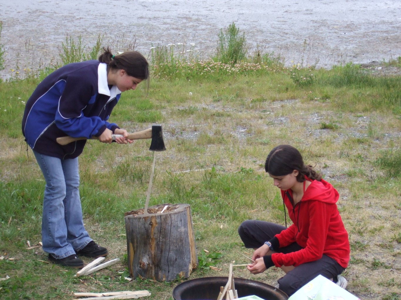 Dann ging’s ans Holzhacken, doch lange konnten Fabienne und ich nicht Holz hacken, denn Papi hatte wieder zu viel Angst, dass wir uns ein Bein abhacken könnten.