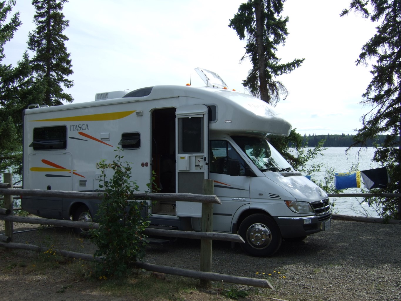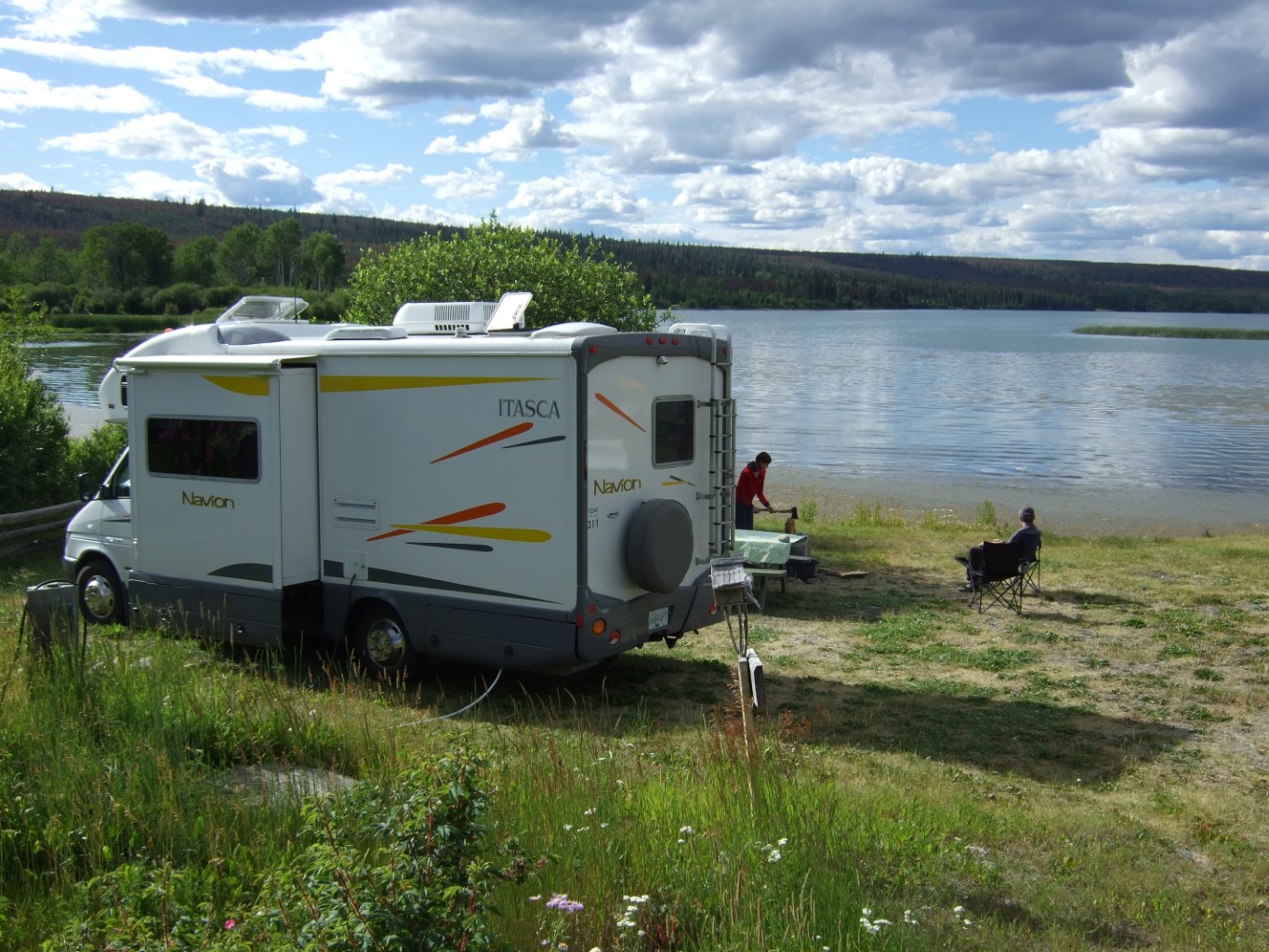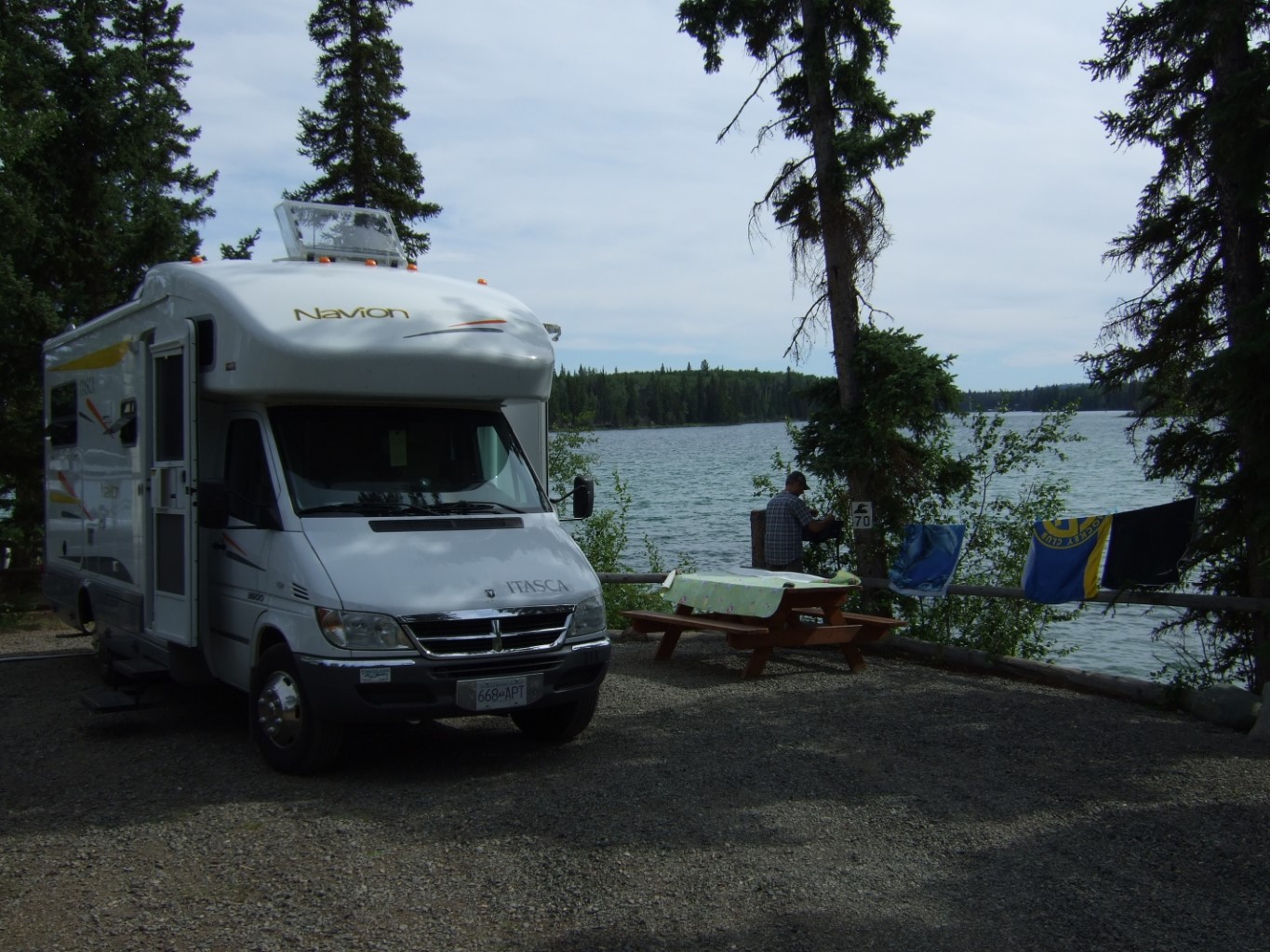 Nach 10 Kilometer Schotterpiste erreichen wir das Howdy’s Lakeside Resort. Wir werden freundlich begrüsst und können unser Wohnmobil direkt am Ufer aufstellen.
