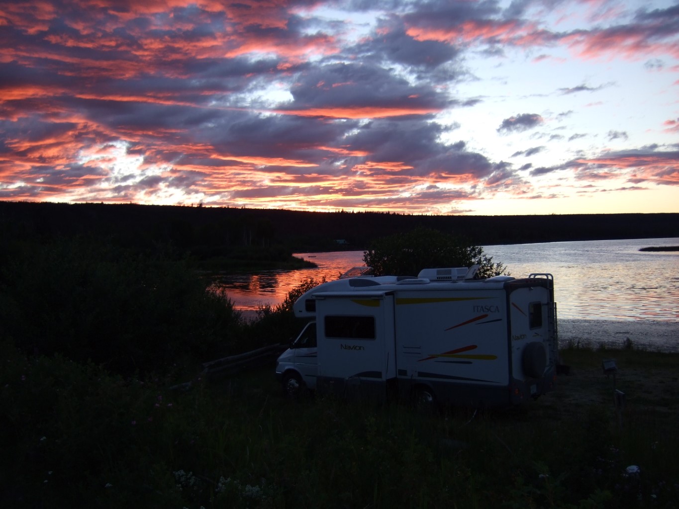 Nach Sonnenuntergang verziehen wir uns in Wohnmobil, denn die Mücken draussen sind recht angriffig.