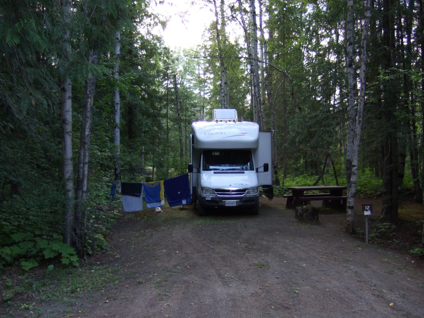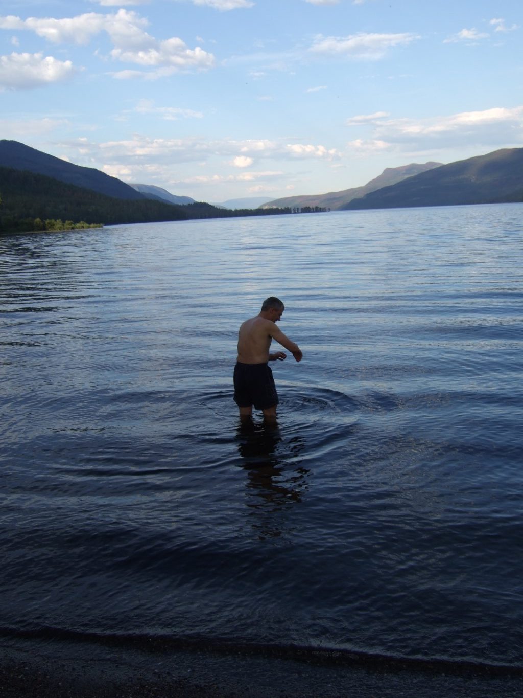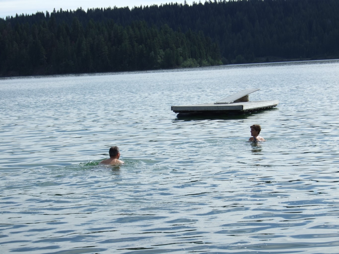 Den fanden wir auch. Ein Campingplatz, gerade gelegen am wunderschönen Lac la Hache. Als wir uns eingerichtet hatten und Strom und Wasser angeschlossen waren, gönnten wir uns einen Schwumm im 19 grädigen Wasser.