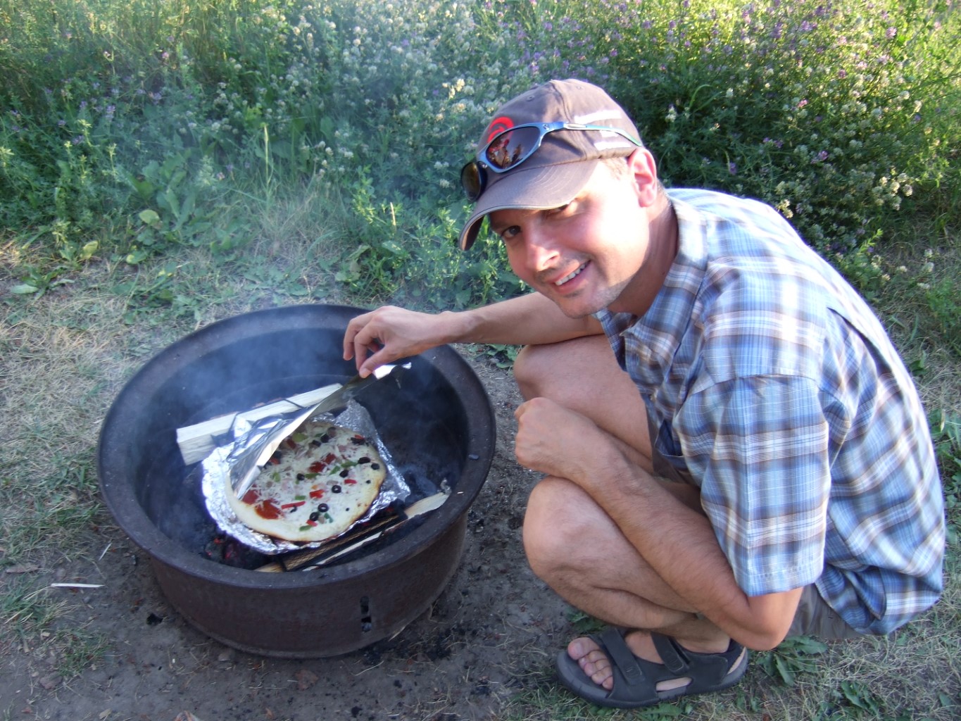 Als das Feuer brannte, machten wir darauf feine Pizza.