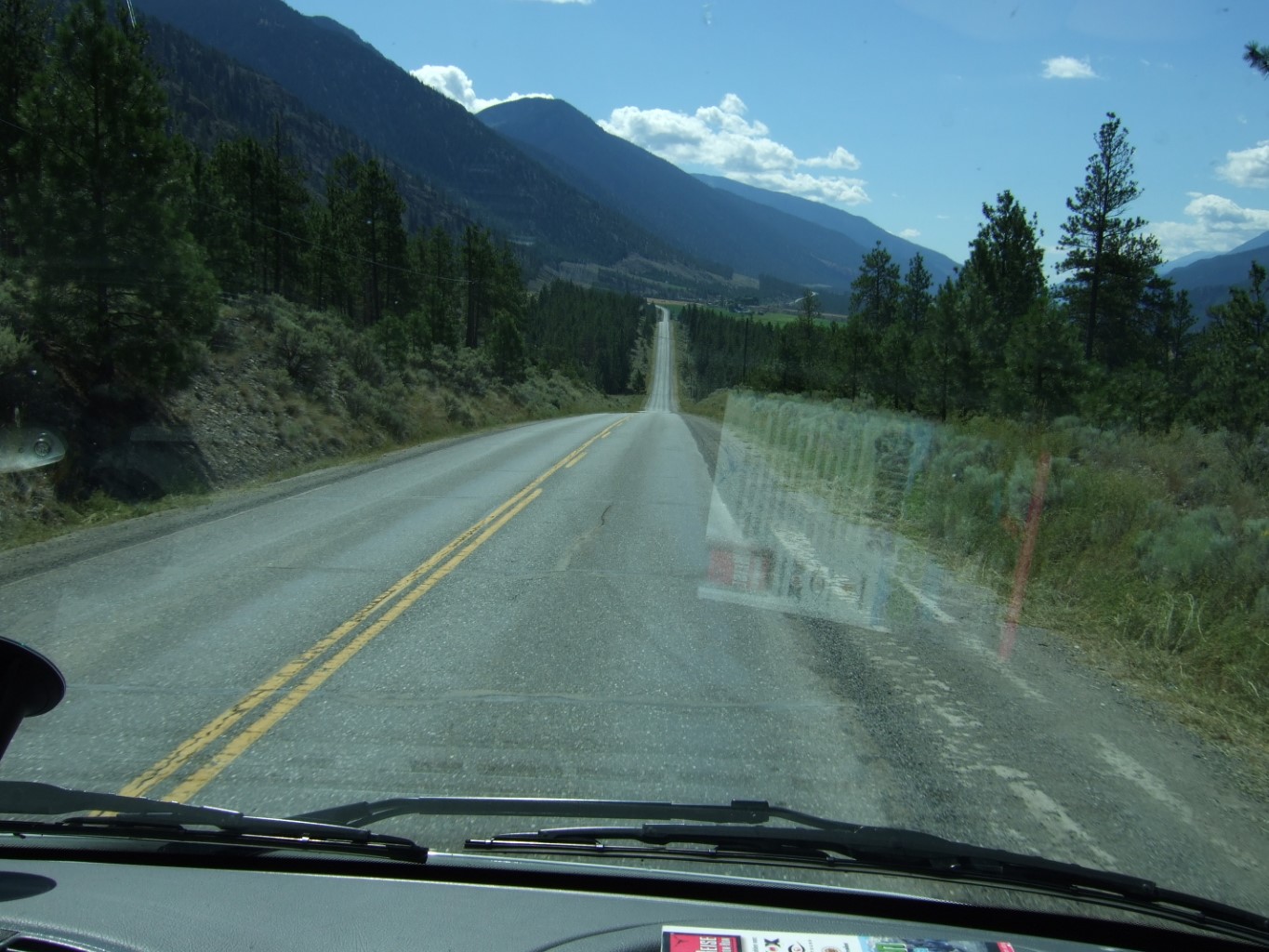 Die ersten 50 km sind von Kiefernwald gesäumt. Es stimmt uns nachdenklich, dass stellenweise über die Hälfte des Waldes abgestorben ist. Man erkennt dies an den rot gefärbten Nadeln sehr gut. Weiter Richtung Osten gibt es zunehmend Weideland.