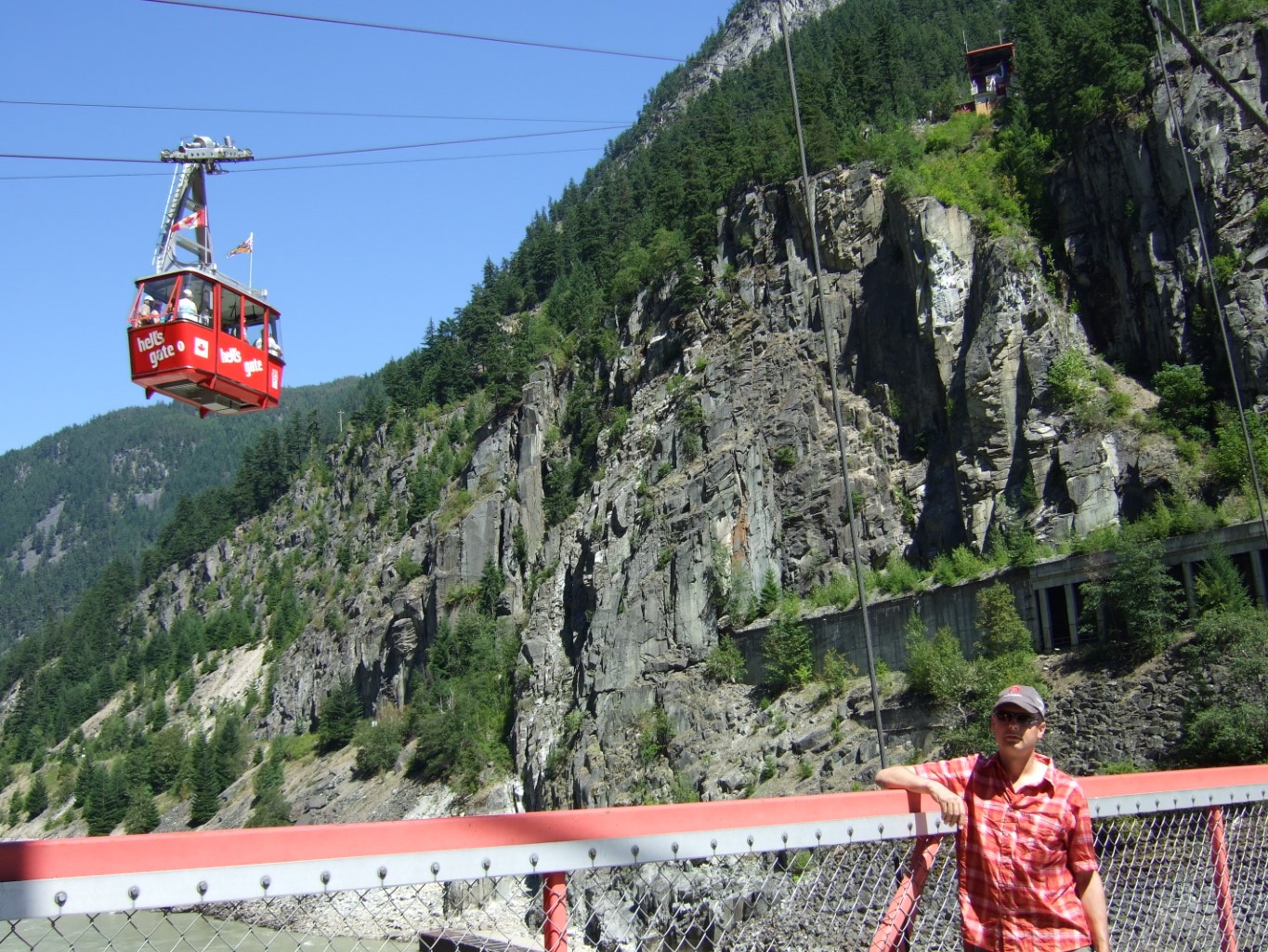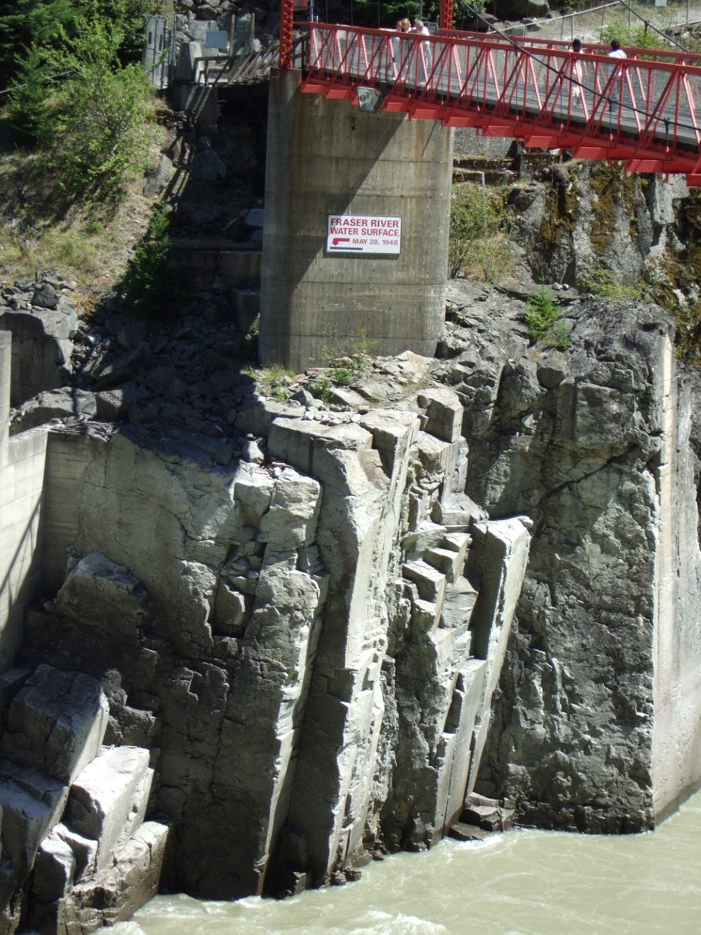 Unten angekommen aßen wir Eis und Hotdogs. Das Eis war fürchterlich und das schlimmste daran war, das man nicht wusste was alles drin war. Auf der Brücke genossen wir den Ausblick auf den Fraser River. Der Marsch hinauf war eine pure Katastrophe!