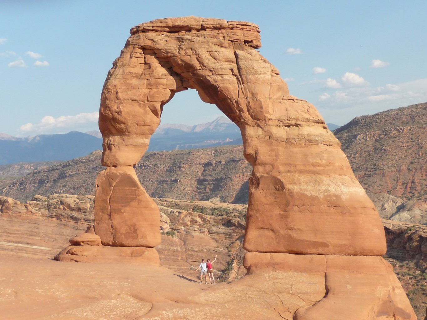 Gegen 19 Uhr fuhren wir zur Wolfe Ranch, um den 2.5 Km Trail zum Delicate Arch zu laufen. Zum Glück versteckte sich während dem Aufstieg die Sonne hinter den Wolken. Beim Delicate Arch angekommen, kam die Sonne und wir konnten den Felsbogen in voller Schönheit genießen.
