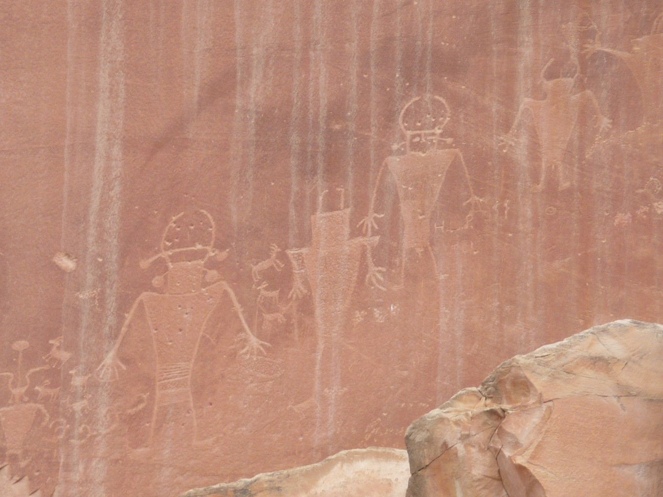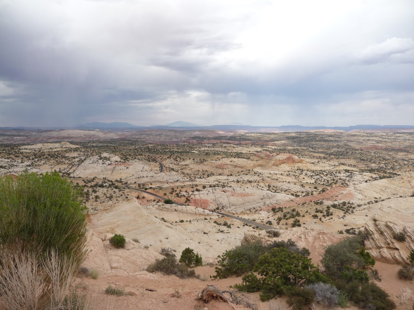 Nach Hanksville verdunkelte sich der Himmel zusehends. Bei der Einfahrt in den Capitol Reef gab es einige Regenschauer. Als wir zur Besichtigung der Felszeichnungen das Auto verließen, war die Temperatur richtig angenehm, zudem wehte ein leichter Wind.