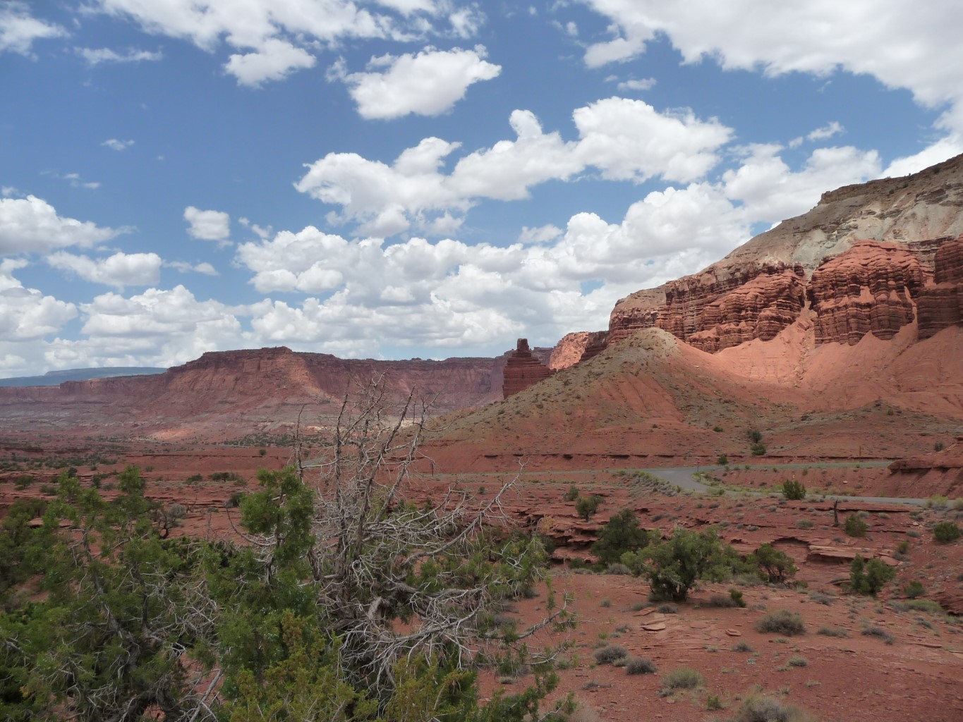 Heute morgen hatten wir es nicht sehr eilig. Da wir an den beiden vorangegangenen Tagen früh aufstehen mussten, war erst einmal ausschlafen angesagt. Gegen 10 Uhr sind wir in Moab losgefahren. Das erste Teilstück über Green River, Hanksville zum Capitol Reef N.P. führte mehrheitlich durch öde, wüsten-artige Landschaften.