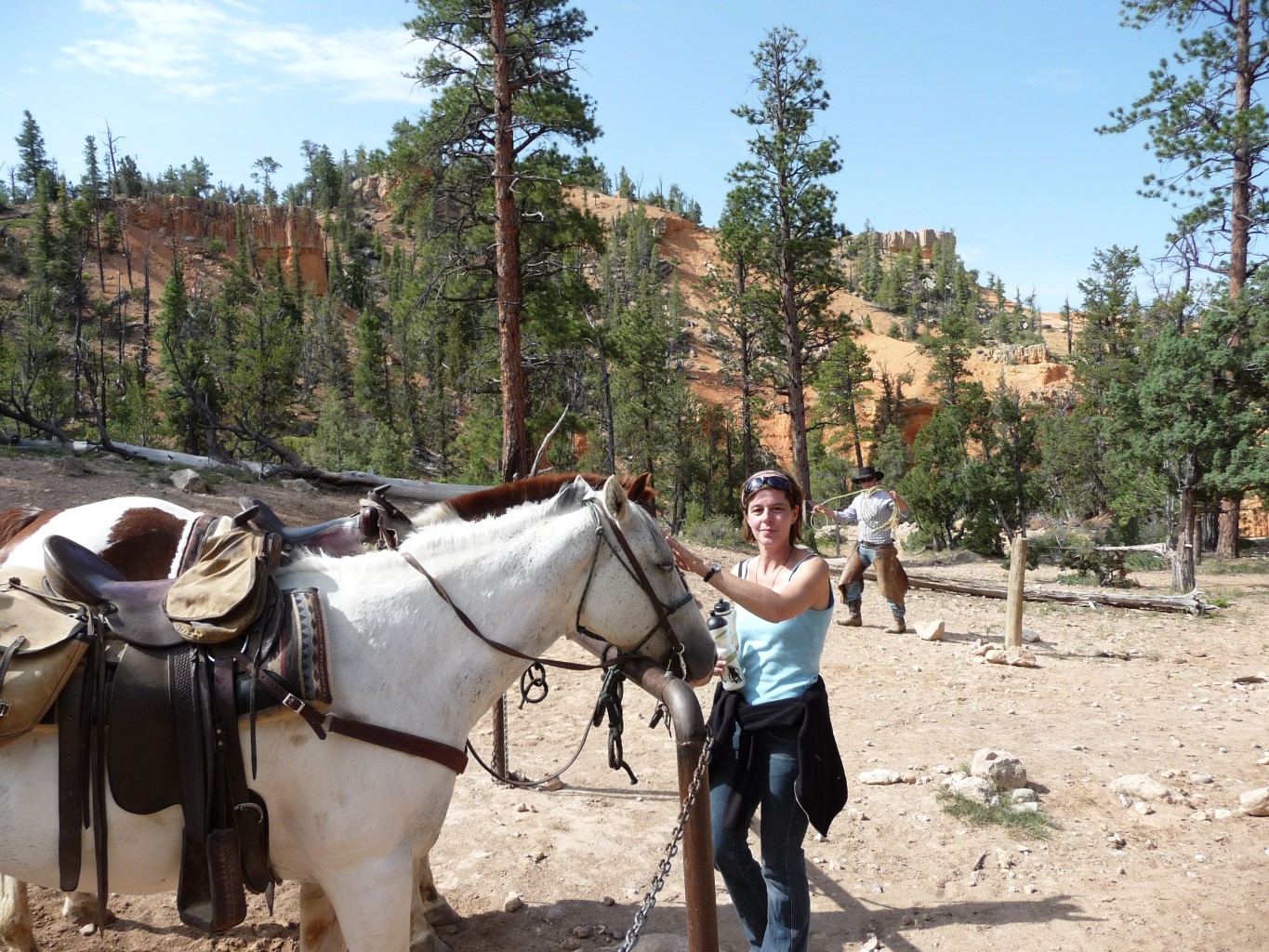 Um 8 Uhr holte uns ein 19 jähriger Cowboy ab, der uns zum Start brachte. Die Pferde wurden uns zugeteilt und wir ritten leicht bergauf, durch den schönen Canyon. Bei der ersten Pause schmerzte mein Hintern schon ziemlich.