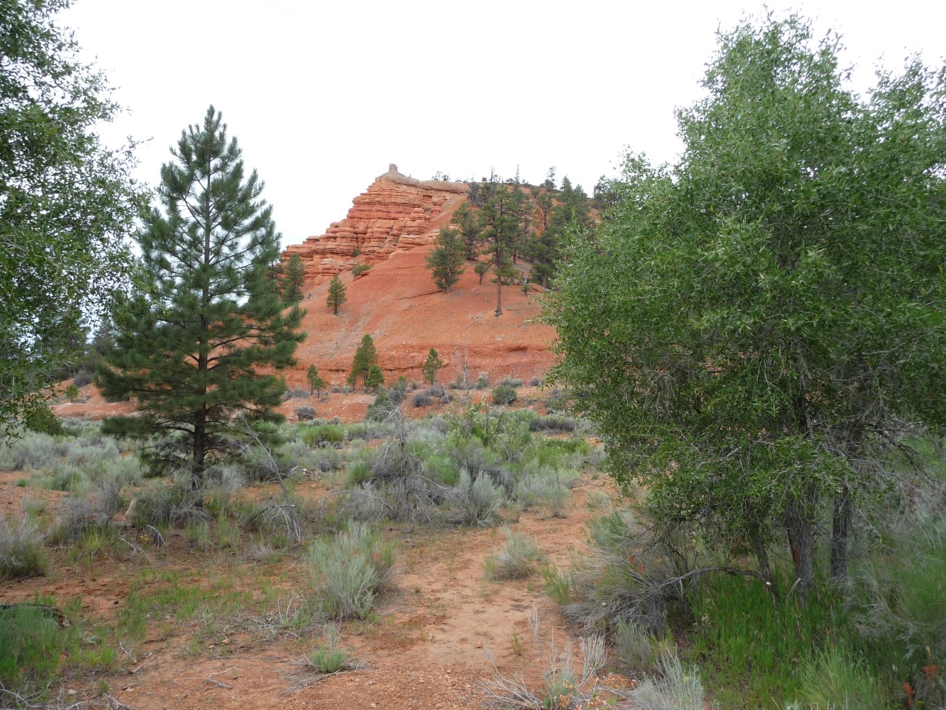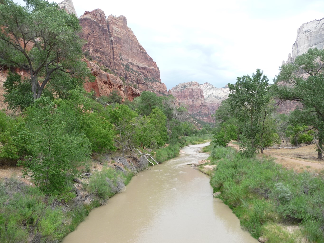 Um 10 Uhr sind wir weitergefahren, durch den schönen Red Canyon , Richtung Westen zum Zion Nationalpark. Das Wetter war stark bewölkt, garniert mit schwachen Regenschauern. Die Temperaturen lagen aber im ganz angenehmen Bereich von ca. 25 Grad.