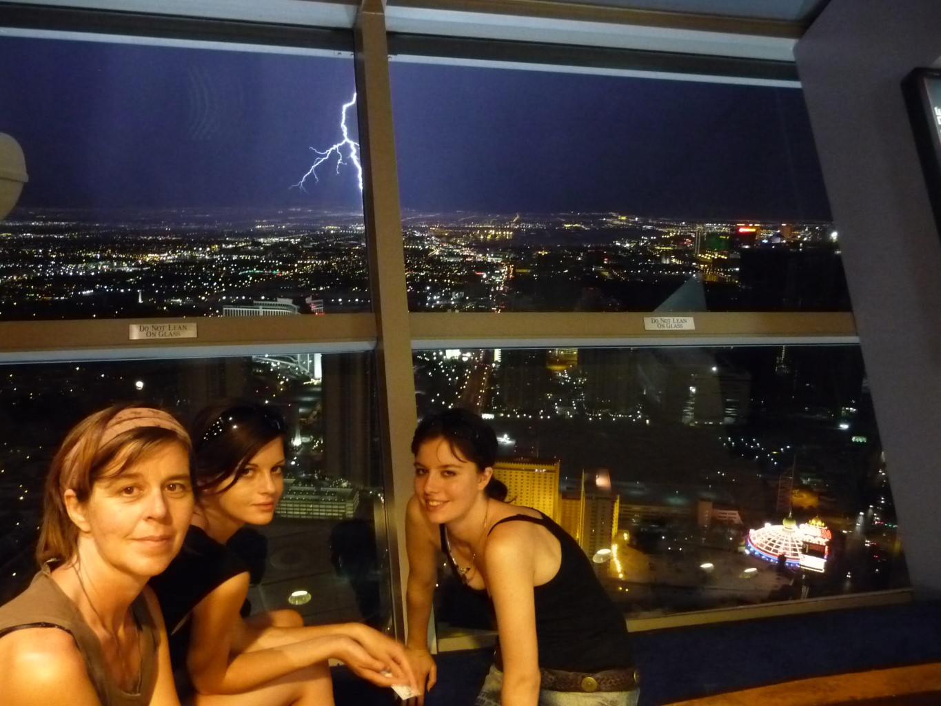 Danach nahmen wir wieder den Bus zum Stratosphere Tower. Wir lösten ein Tower Ticket und fuhren mit dem Lift nach oben. Kaum oben angekommen wurde eine Gewitterwarnung durchgegeben. Wir mussten die Außenplattform verlassen und es herrschte einige Aufregung beim Sicherheitspersonal. Um ein abenteuerliches Erlebnis reicher, fuhren wir nach unten.