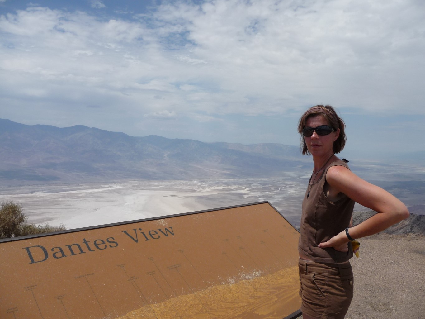 Wir betankten das Auto und deckten uns mit den nötigen Wasser und Lebensmittelvorräten ein. Zuerst besuchten wir den Aussichtspunkt Dantes View, von wo wir einen herrlichen Ausblick auf das Death Valley hatten. Als wir wieder los fuhren, hatte unser Navi den Geist aufgegeben wegen der Hitze.