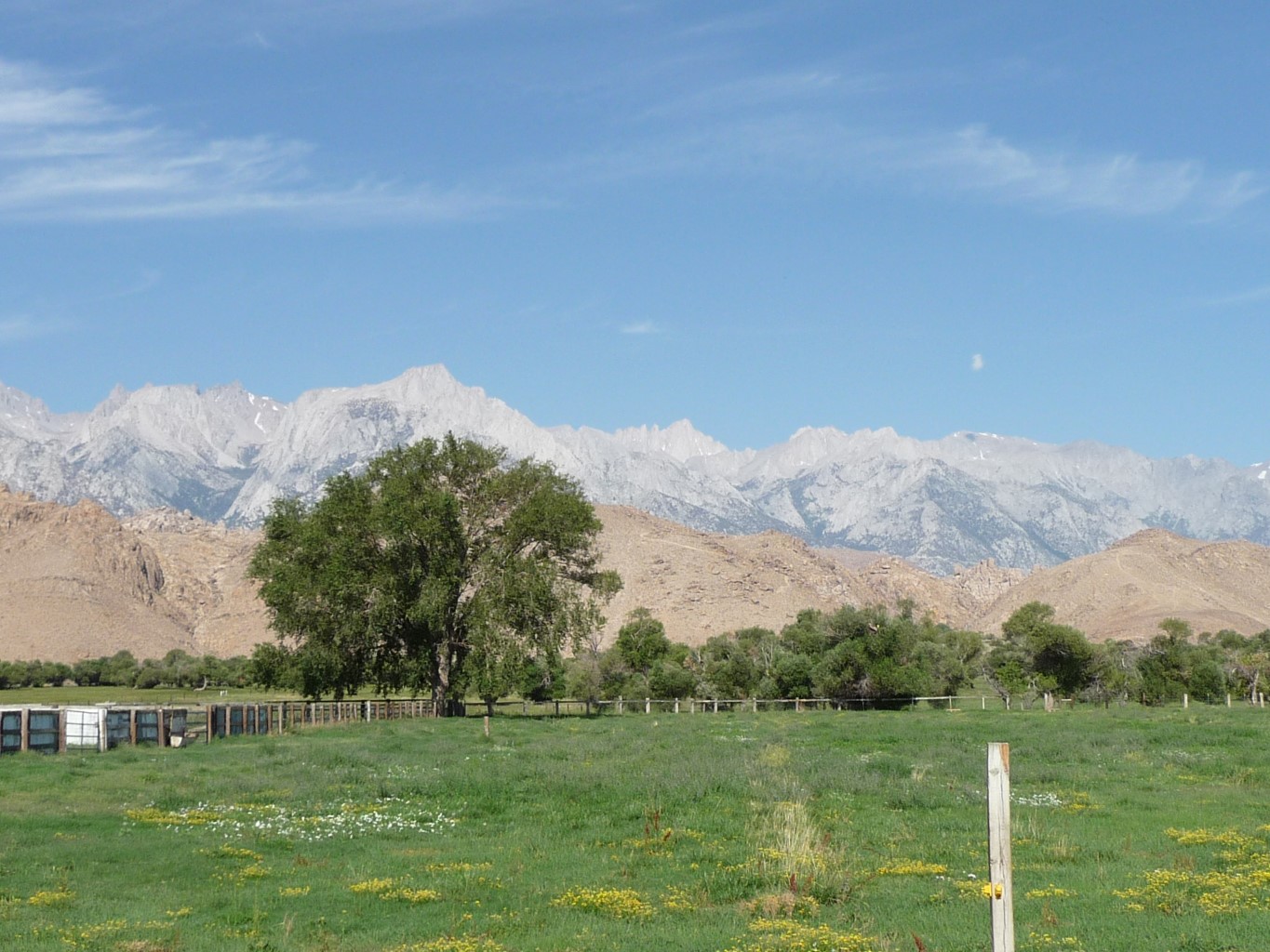 Unendlich lange fuhren wir durch die Bruthitze und überquerten dabei 2 Pässe. Bei den Bergfahrten mussten wir jeweils die Klimaanlage ausschalten, um ein Überhitzen des Motors zu vermeiden. Kaum waren wir der Wüste entflohen, sahen wir auch schon den höchsten Berg Kontinentalamerikas, den Mount Whitney.