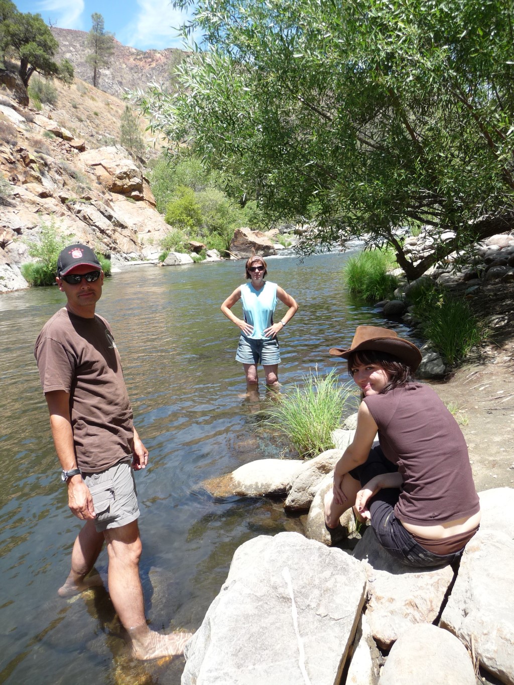 In hunderten von Kehren ging es danach wieder hinunter in Richtung Three Rivers – zuerst durch Wald und später durch verdorrtes Weideland. Nach dem Einchecken im Hotel nahmen wir ein wohlverdientes Bad im Kaweah River und genossen den Sonnenuntergang.