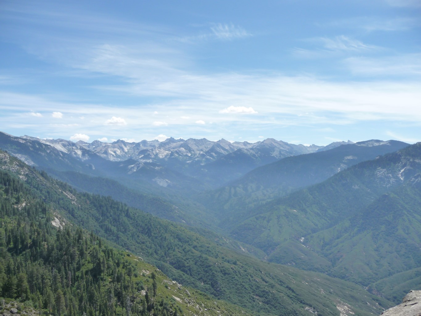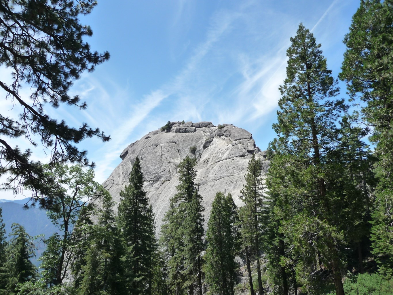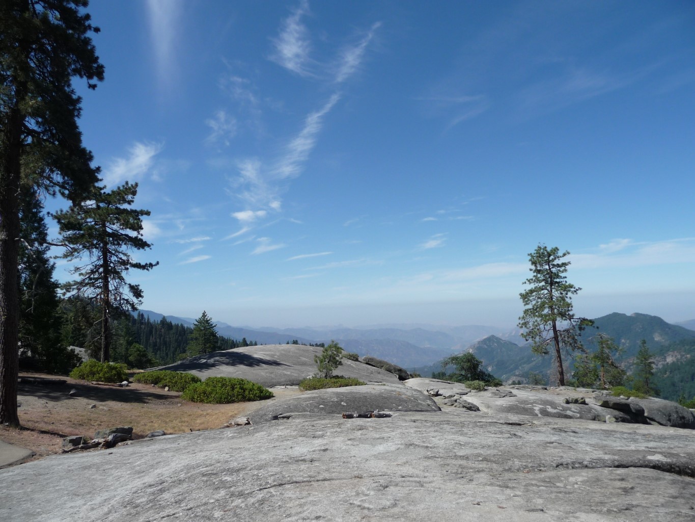 Wir sahen uns noch das Sequoia Museum an und fuhren dann weiter zum Moro Rock Parkplatz. Von da liefen wir den kurzen aber steilen Aufstieg zum Aussichtsfelsen. Wie erwartet, wimmelte es von Japanern, die wie wild jedes Kieselsteinchen fotografierten, statt den Laufmarschturbo zu aktivieren. Auf dem schmalen Pfad kam es immer wieder zu Stau.