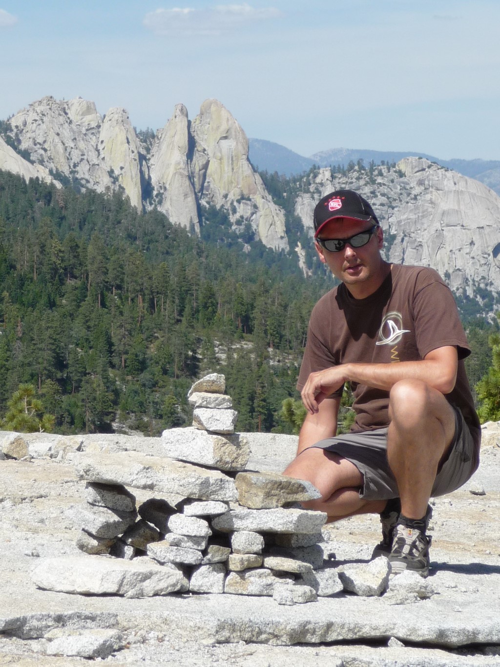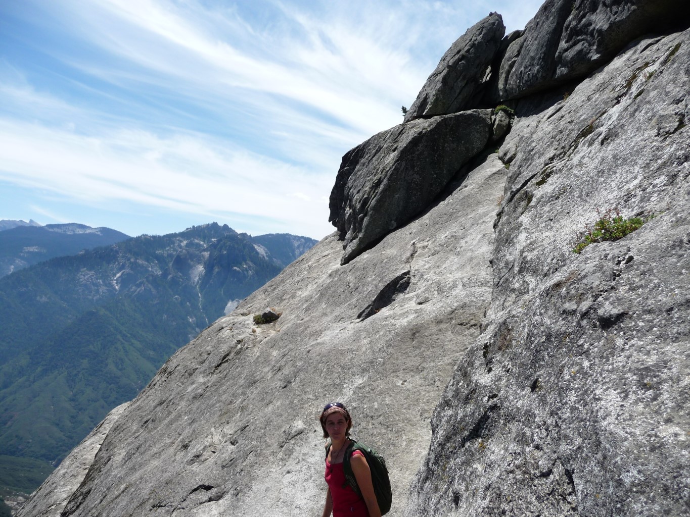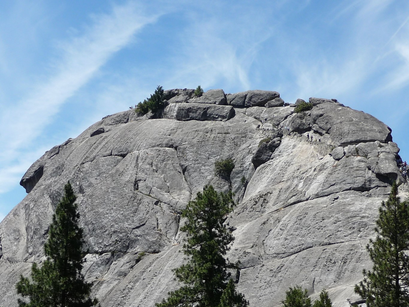 Wir sahen uns noch das Sequoia Museum an und fuhren dann weiter zum Moro Rock Parkplatz. Von da liefen wir den kurzen aber steilen Aufstieg zum Aussichtsfelsen. Wie erwartet, wimmelte es von Japanern, die wie wild jedes Kieselsteinchen fotografierten, statt den Laufmarschturbo zu aktivieren. Auf dem schmalen Pfad kam es immer wieder zu Stau.