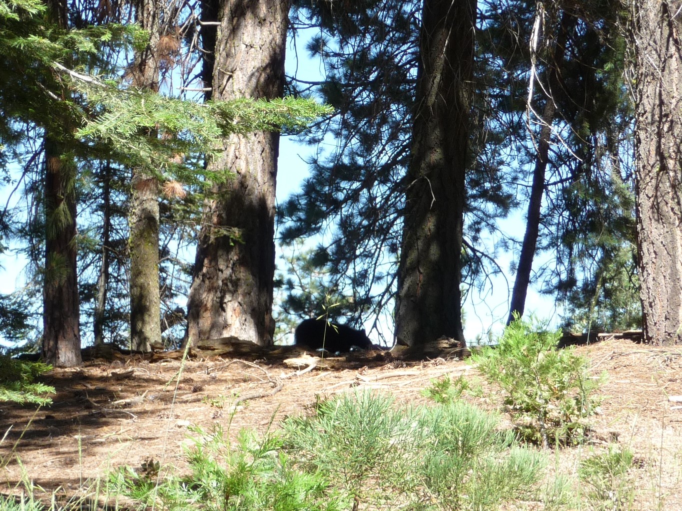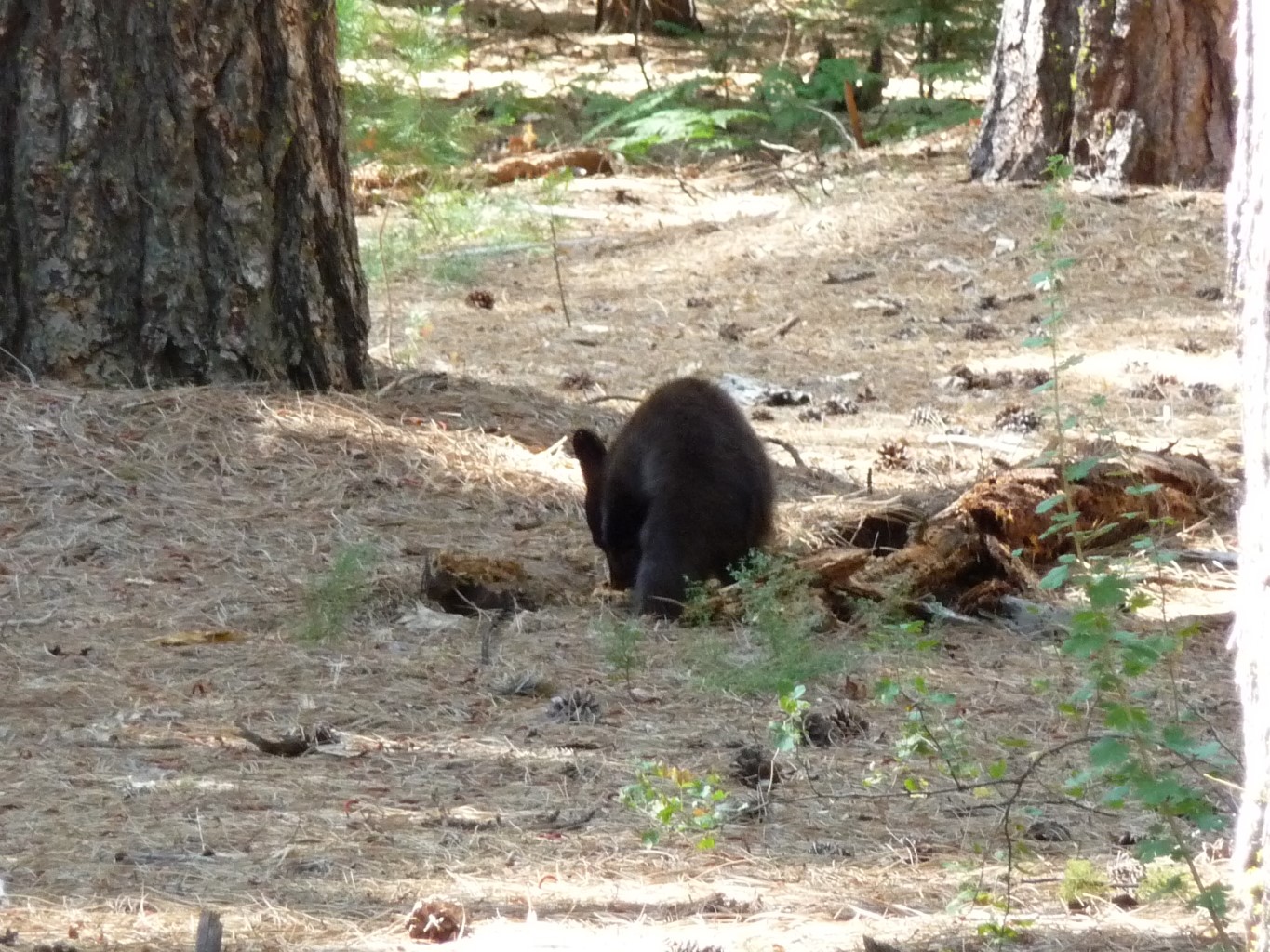 Die Reise begann. Nach einer Stunde Fahrt bergauf, kamen wir im Sequoia N.P. an. Kurz vor dem Visitor Center sah ich einen jungen Schwarzbär im Gebüsch. Wir parkierten unser Auto und Ursli und ich liefen mit dem Fotoapparat bis ca. 20 Meter zum Bären hin. Leider lief er rasch weg, und wir konnten kein gutes Foto machen.