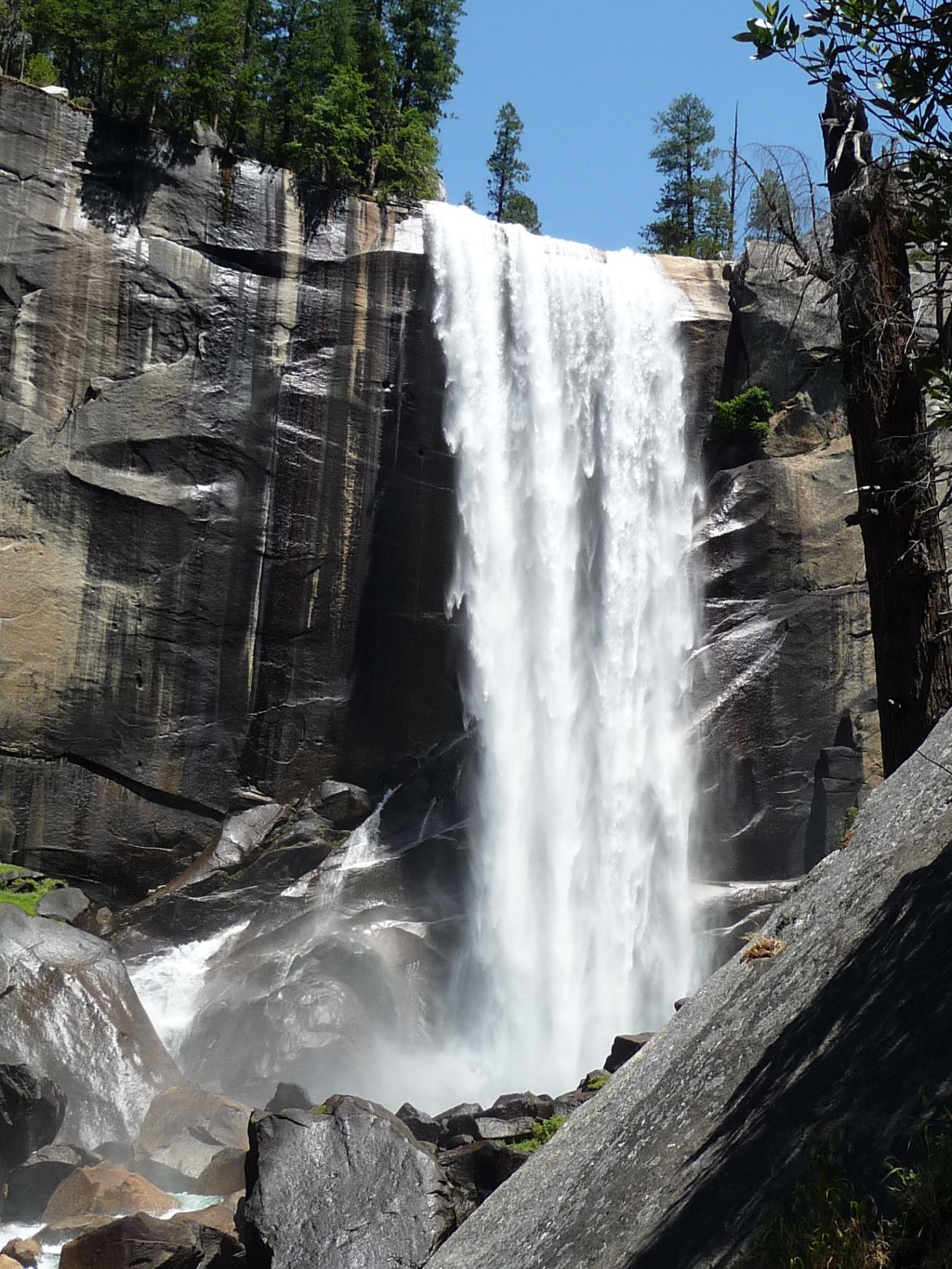 Vom Parkplatz nahmen wir den Shuttlebus zum Ausgangspunkt unserer geplanten Wanderung. Als wir dort ankamen, merkte Urs, dass er sein Portemonnaie im Auto vergessen hatte. Deshalb kehrte die ganze Familie wieder um. Wieder zurück – mit Portemonnaie, wanderten wir eine halbe Stunde, bis wir den unteren Teil der Vernal Falls erreicht hatten. Zum oberen Teil ging es nochmals eine gute halbe Stunde steil bergauf.