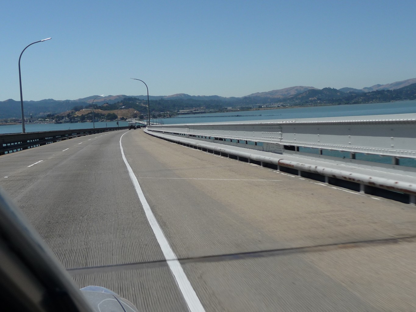Wegen Bauarbeiten standen wir zwischen Merced und Modesto recht lange im Stau. In Tracy besuchten wir zwischendurch ein Outlet Center. Kurz vor Oakland sahen wir auf einer Anhöhe viele Windräder, die meisten davon standen aber wegen des schwachen Windes still.