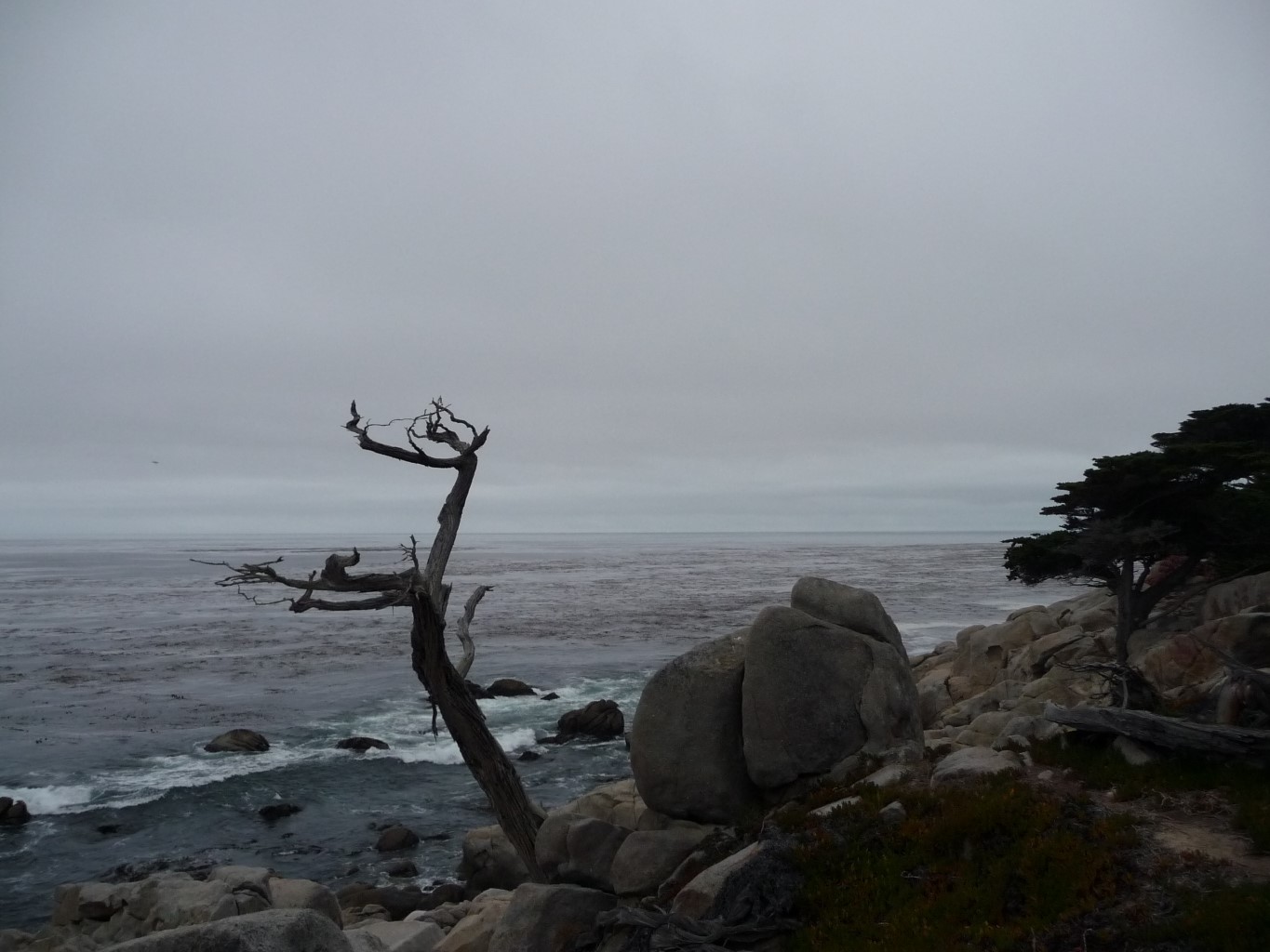 Auch Monterey steckt am Morgen im Nebel. Wir fahren bis Carmel und frühstücken im Starbucks des Einkaufscenters. Wir kaufen dort auch gleich noch ein großes Sandwich für den Lunch. Danach geht es südwärts. Leider ist der Nebel an der Küste immer noch dicht, so dass wir nicht viel von der Landschaft sehen.