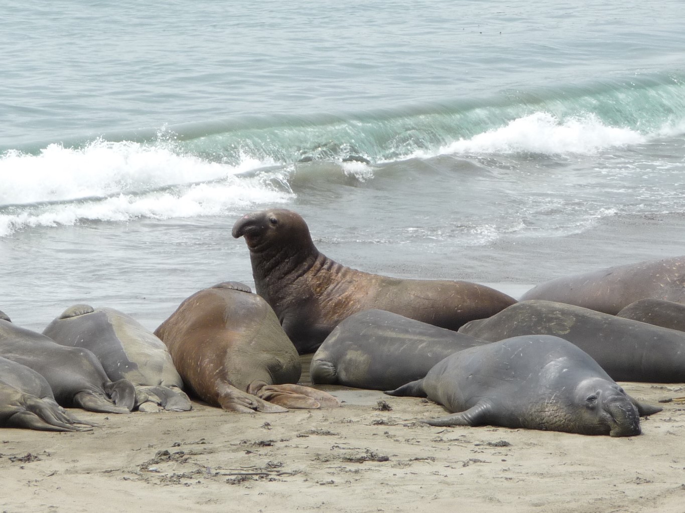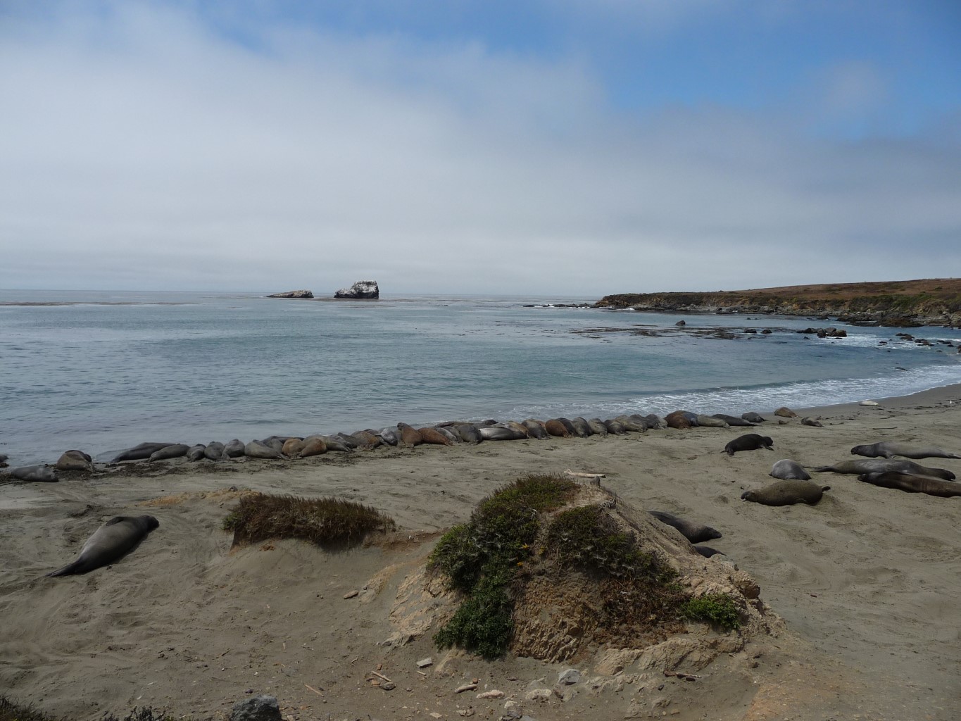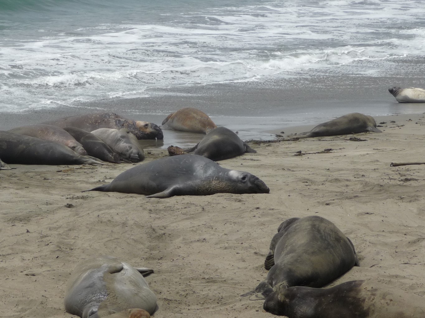 Weiter geht es in die Gegend von San Simeon. Dort gibt es einen Strand mit einer Kolonie von See Elefanten. Belustigt schauen wir den Viechern zu. Sie liegen in einer Reihe träge in der Sonne und schaufeln sich ab und zu etwas Sand über den fetten Bauch. Fabienne erklärt diese Spezies umgehend zu ihrem Lieblingstier.
