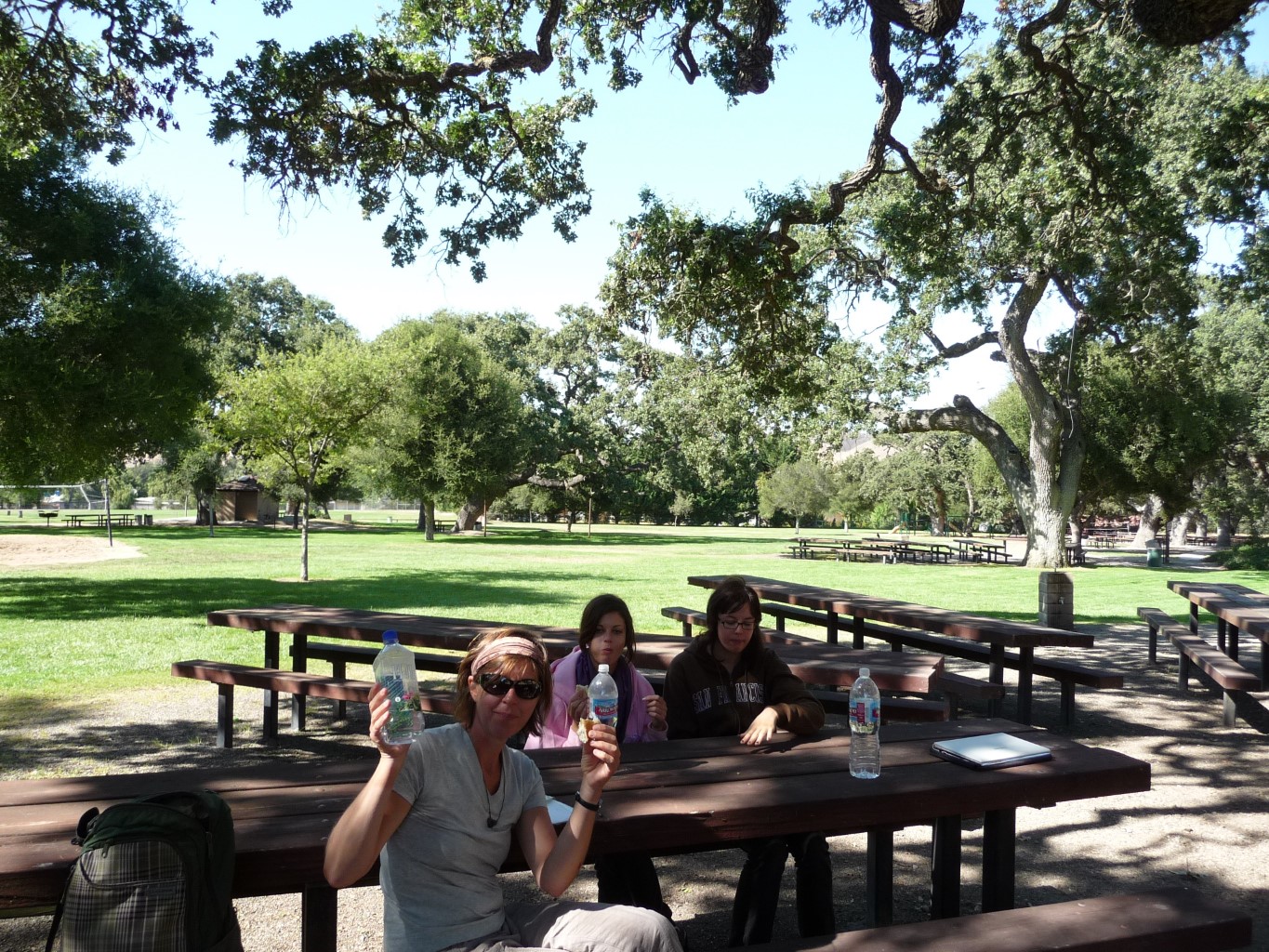 In Arroyo machen wir den nächsten Halt. Mein Vorrat an Wrangler Jeans muss wieder aufmunitioniert werden. Die Jeans sind in der USA 4x billiger als in der Schweiz. Nachdem wir den halben WalMart gekauft haben, fahren wir weiter, vorbei an endlosen Rebenplantagen, nach Los Alamos. Im Dorfpark genießen wir unseren Lunch unter schattigen Bäumen.