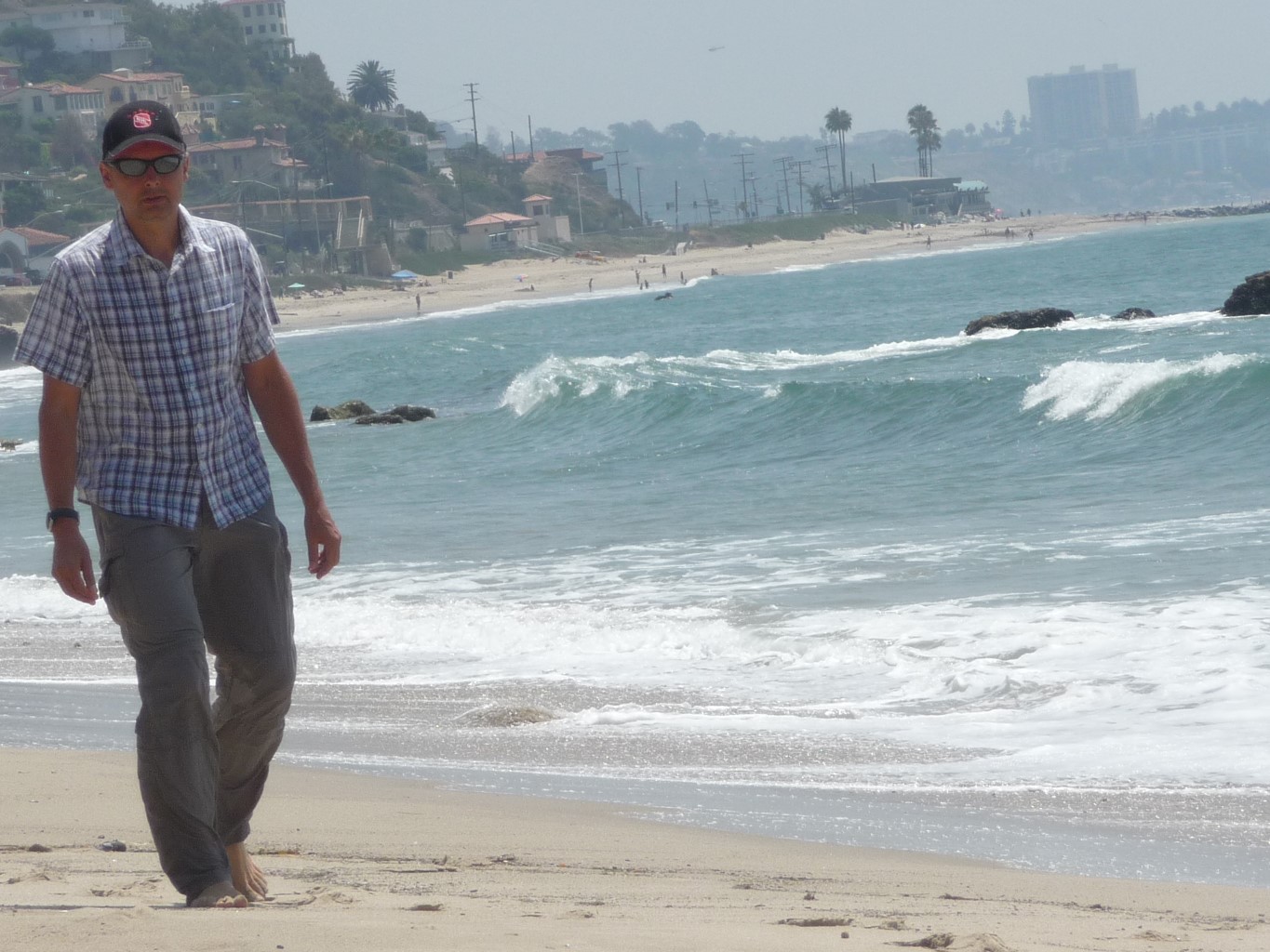 Auch Santa Barbara steckt am Morgen im Nebel. Nach dem Frühstück im Hotel fahren wir um 10 Uhr los. Es geht der Küste entlang südwärts. Am Strand von Malibu wollen wir unsere Füße im kalten Pazifik baden.