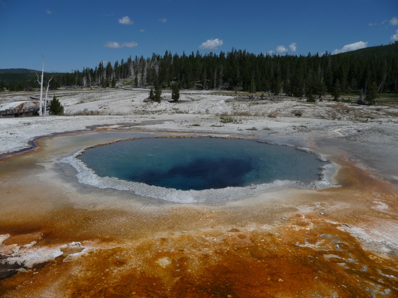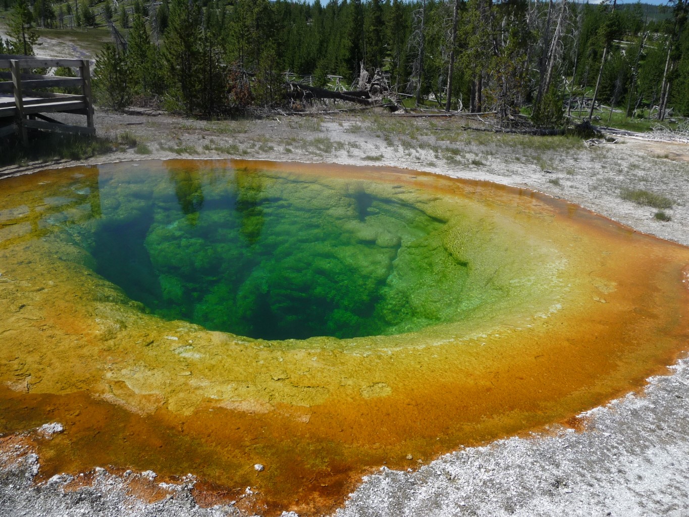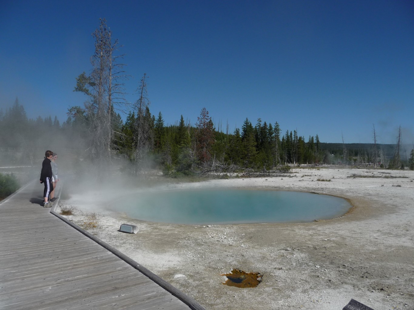Danach absolvierten wir den Upper Geyser Basin Trail, auf dem man verschiedene Springs, Pools und Geysers sah. Sehr gut gefielen uns der Beauty Pool und und der Morning Glory Pool. Insgesamt dauerte dieser Spaziergang 2 Stunden (inkl. Fotopausen).