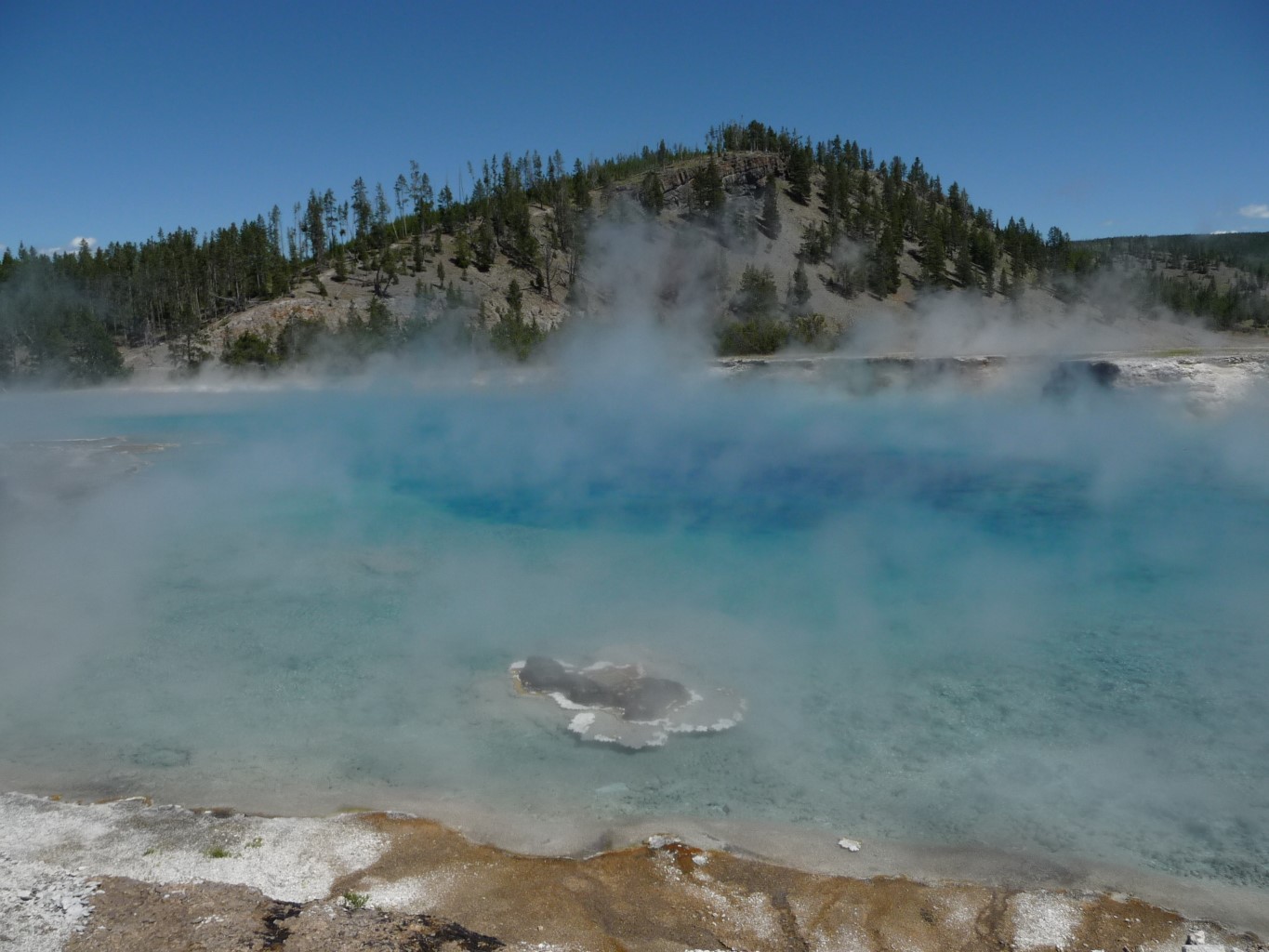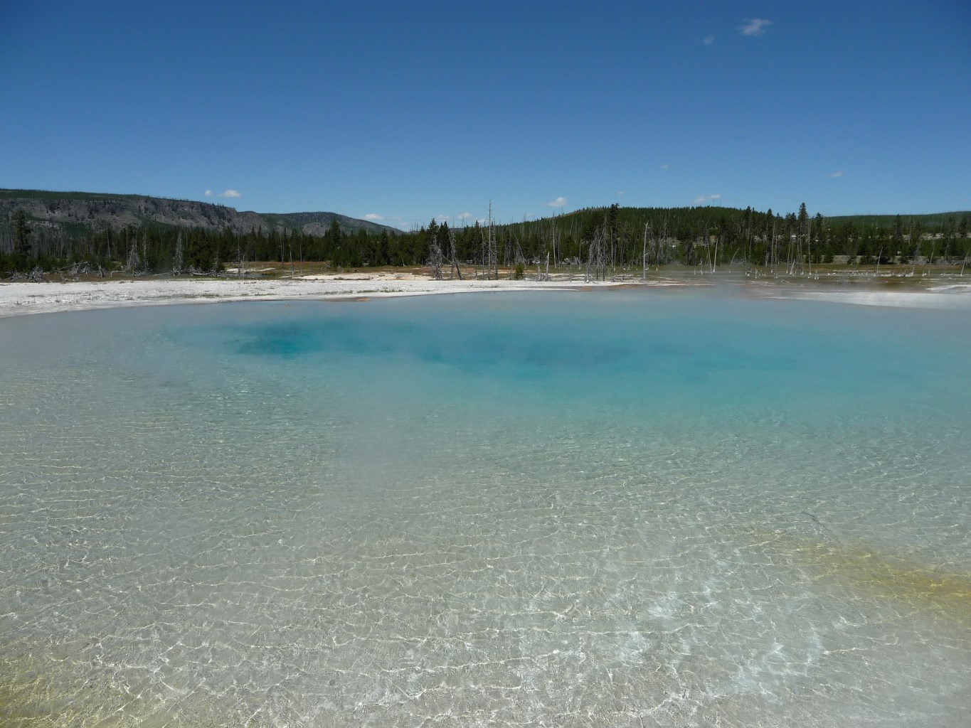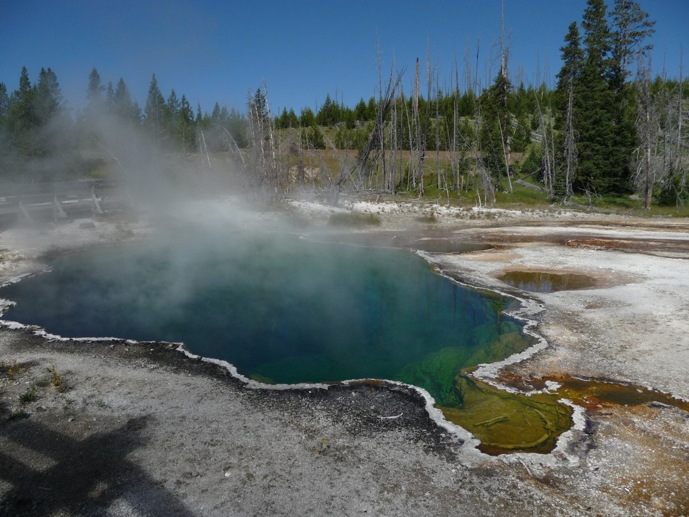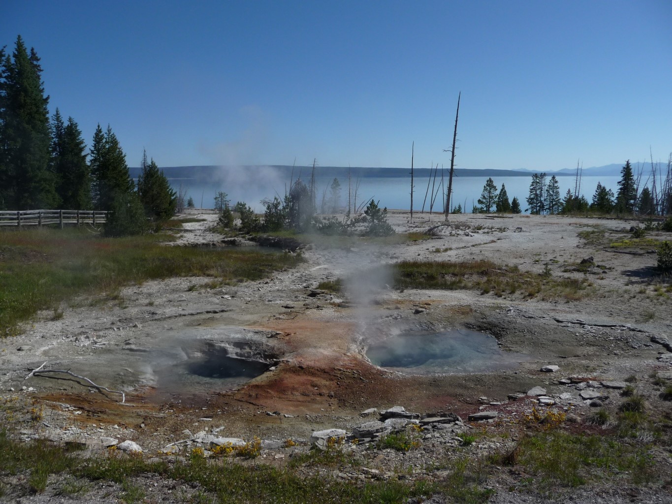 Beim West Thumb Basin machten wir den ersten Halt und besichtigten farbenfrohe Pools, dampfende Geysers und brodelnde Springs.