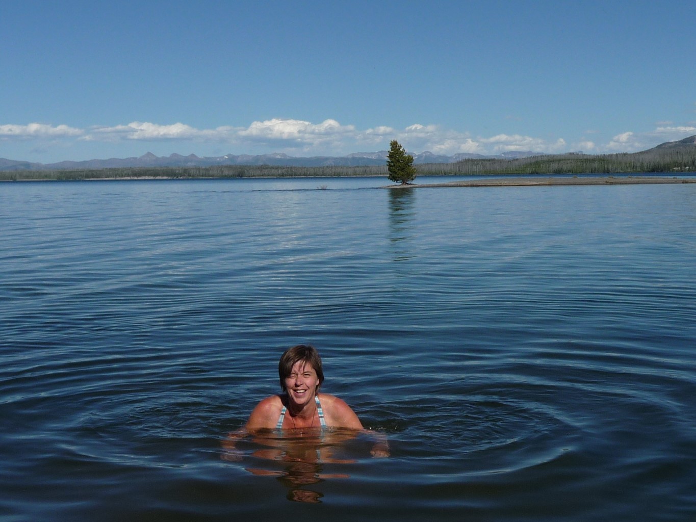 Wir fuhren zum Camping und Mami und Papi beschlossen noch einen kurzen Schwumm im Yellowstone Lake zu machen. Sie taten es auch, kamen jedoch wegen dem sehr kalten Wasser schon nach einer Viertelstunde zurück. 🙂