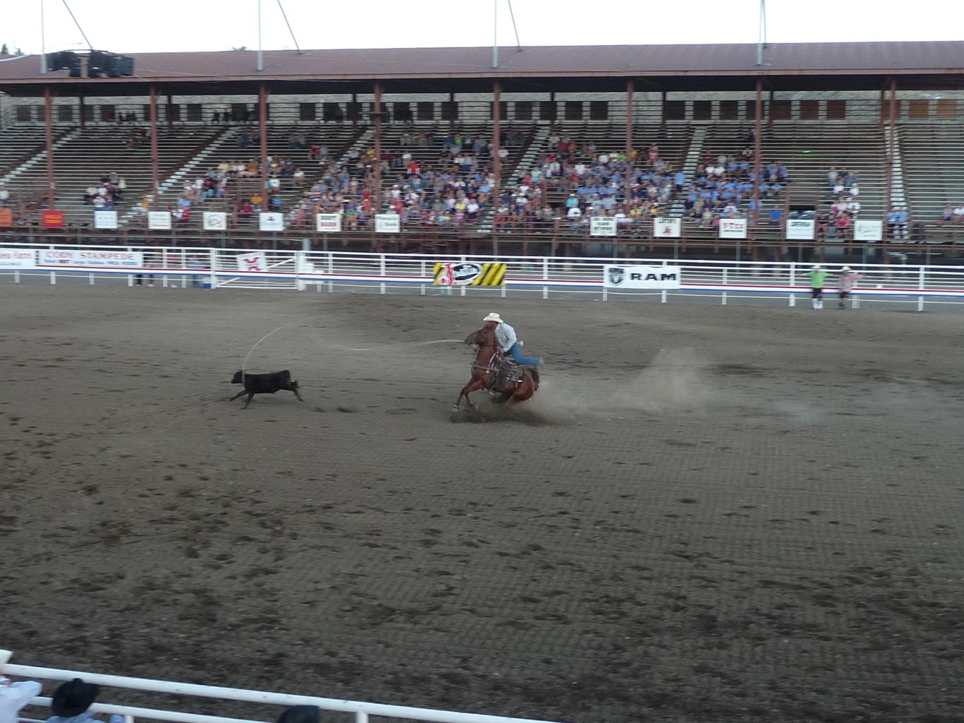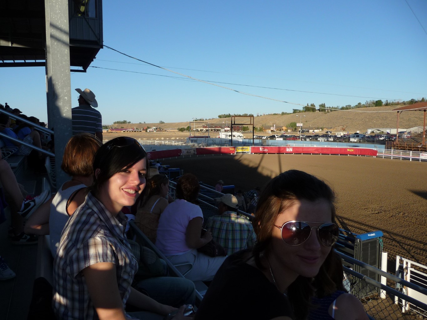 Nach einer Ortsbesichtigung und Shopping im Sport Outlet kam das Highlight des Tages. Wir fuhren mit dem Bus zur Stadtgrenze ans berühmte Cody Night Rodeo. Dort massen sich harte Cowboys im Kälberfangen, Bullen- und Pferdereiten.