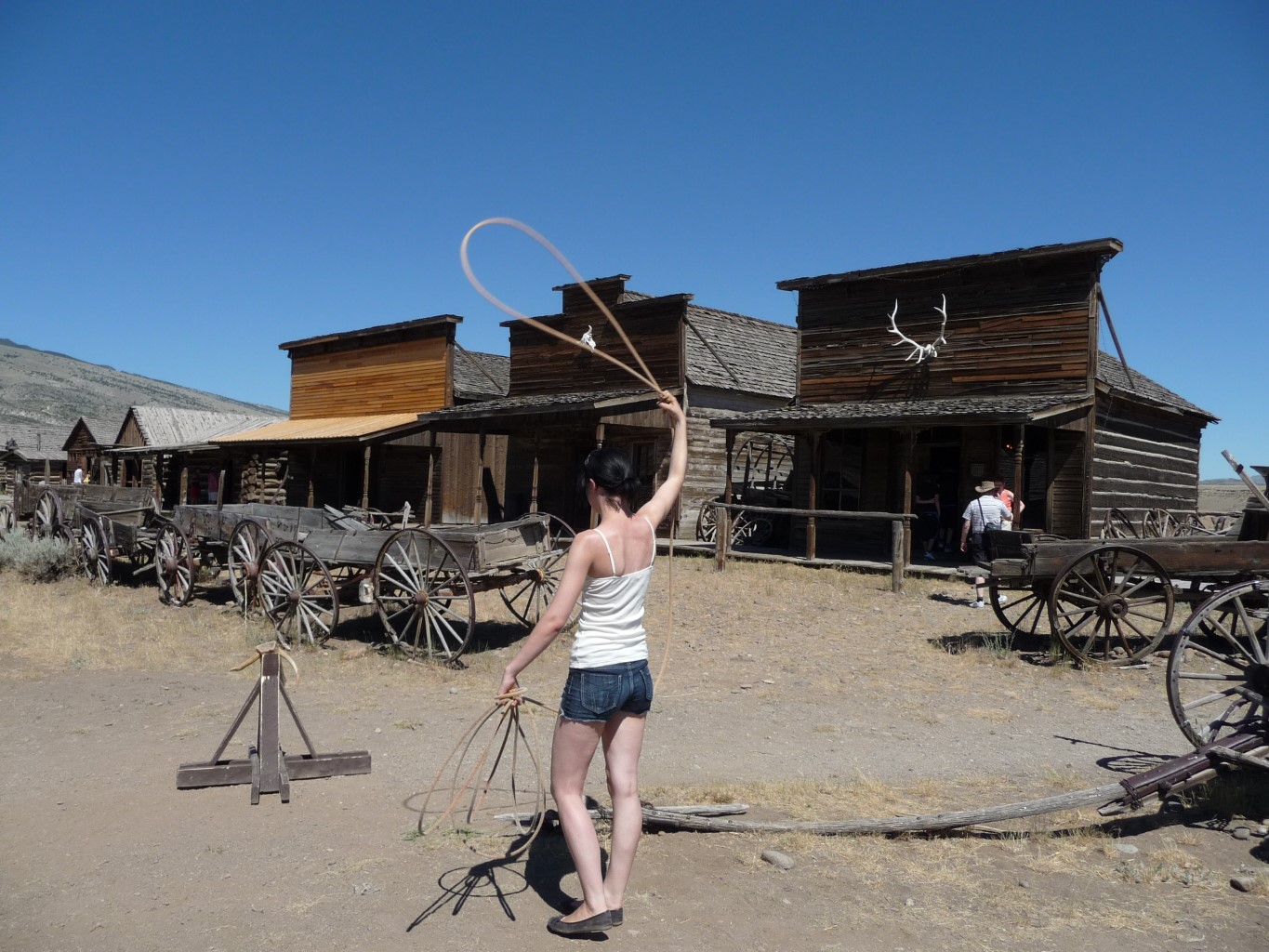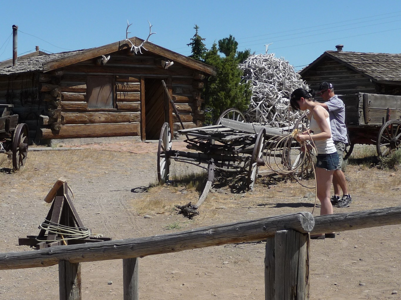 Nach einer guten halben Stunde erreichten wir das Museumsdorf „Historic Cody“. Es war klein und ein bisschen abgelegener als die anderen Sehenswürdigkeiten, doch aus meiner Sicht hat sich der Besuch gelohnt. Für 8 Dollar pro Person wurde einem in den alten Blockhäusern und Scheunen, die Geschichte Codys und dessen Nachbardörfern erzählt. Der Schwerpunkt lag immer zwischen Indianer und Cowboys im Streit ums Überleben. Papi und ich versuchten es mit Lasso werfen, mussten dann aber bald feststellen, das es begabtere Menschen gab.