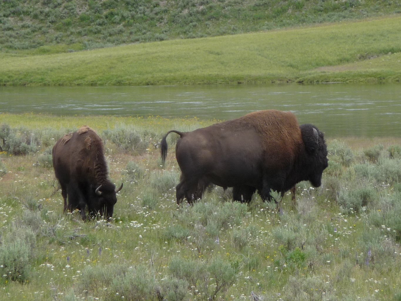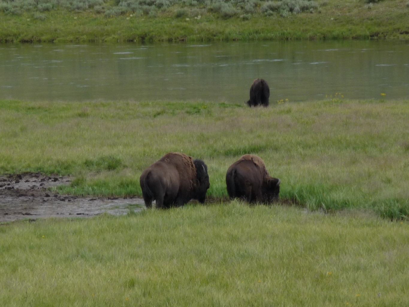 Wir schauten dem Treiben ein Weile zu und machten uns dann auf die Weiterfahrt Richtung Canyon Village. Wegen Unterhaltsarbeiten an der Strasse standen wir vor dem Hayden Valley etwa ¾ Stunden im Stau.