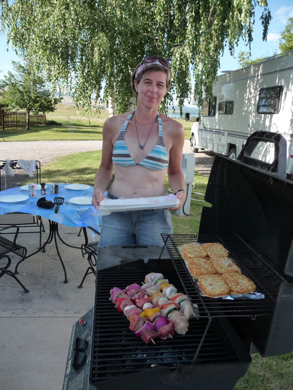 Wieder beim Camper angekommen, grillierten wir Riesenspiesse und als Beilage gab es Röschti und Gemüse. Das war das beste Nachtessen in diesen Ferien.