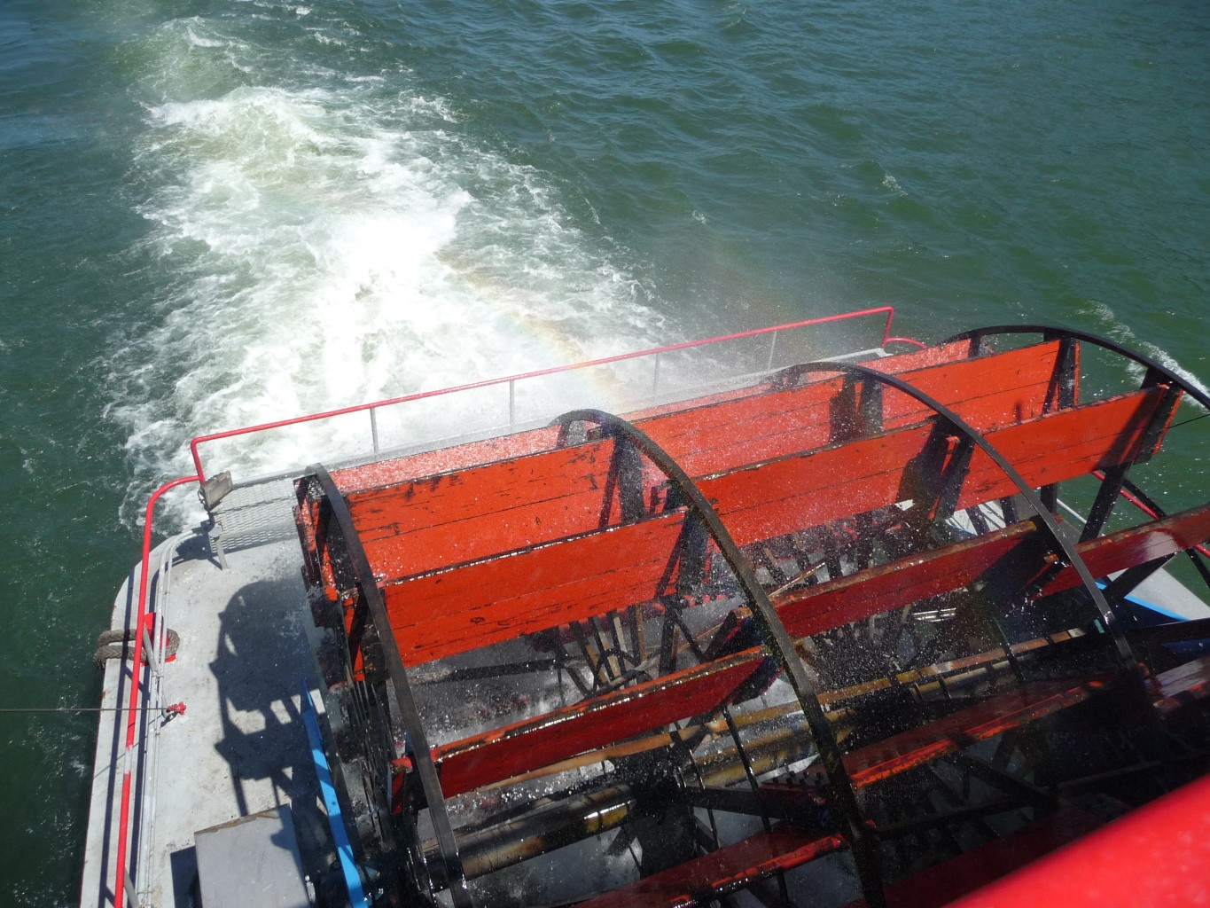 Beim sehr schön gestalteten Marine Park wurde ich schnell fündig. Ein Schaufelraddampfer im Mississippi Style rauchte vor sich hin, bereit für eine 2 stündige Sightseeing Tour auf dem Columbia River. Zurück im Camping konnte ich den Rest der Familie – angesichts der schon sehr warmen Temperaturen für die Schifffahrt überzeugen. Schon bald machten wir uns auf den Weg zum Hafen.