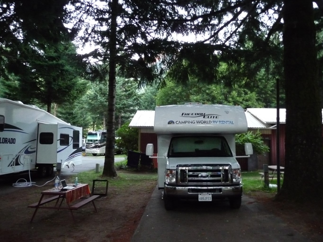 Der KOA Campingplatz in Cascade Locks ist zwar sehr schön gelegen – aber in der Nacht raubte einem das dauernde Gehupe und Getöse der kilometerlangen Güterzüge schon gehörig den Schlaf.