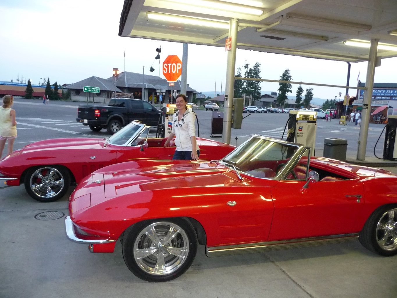 Fabienne und ich genossen einen echten Büffelburger, Mami Fisch und Papi ein real American Steak. Bei einem kleinen Verdauungsspaziergang, trafen wir bei einer Tankstelle zwei Corvette Fahrer an, die uns mit ihren tollen Autos fotografieren liessen.