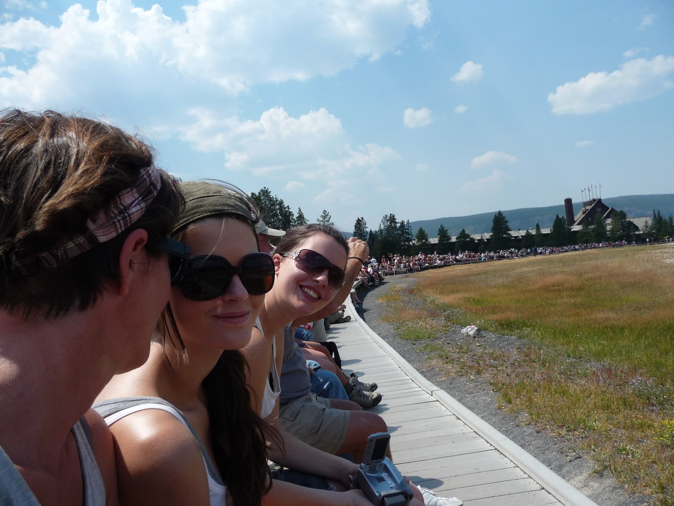 Beim Old Faithful Visitor Center angekommen, fanden wir erst beim zweiten Anlauf einen Parkplatz für das Wohnmobil, denn der Touristenansturm war enorm.