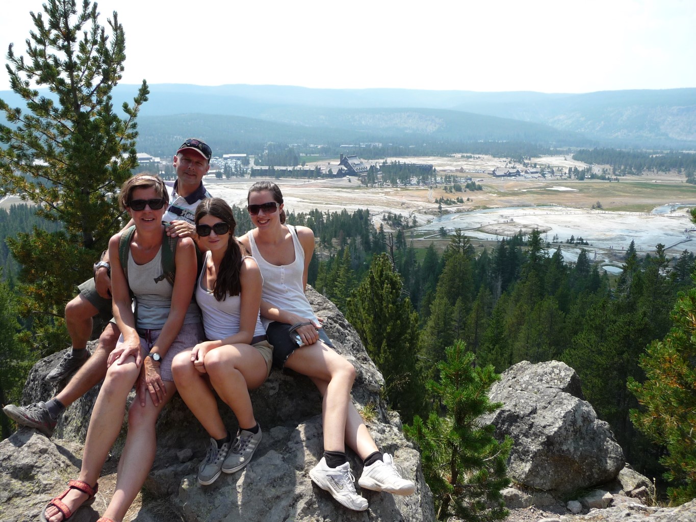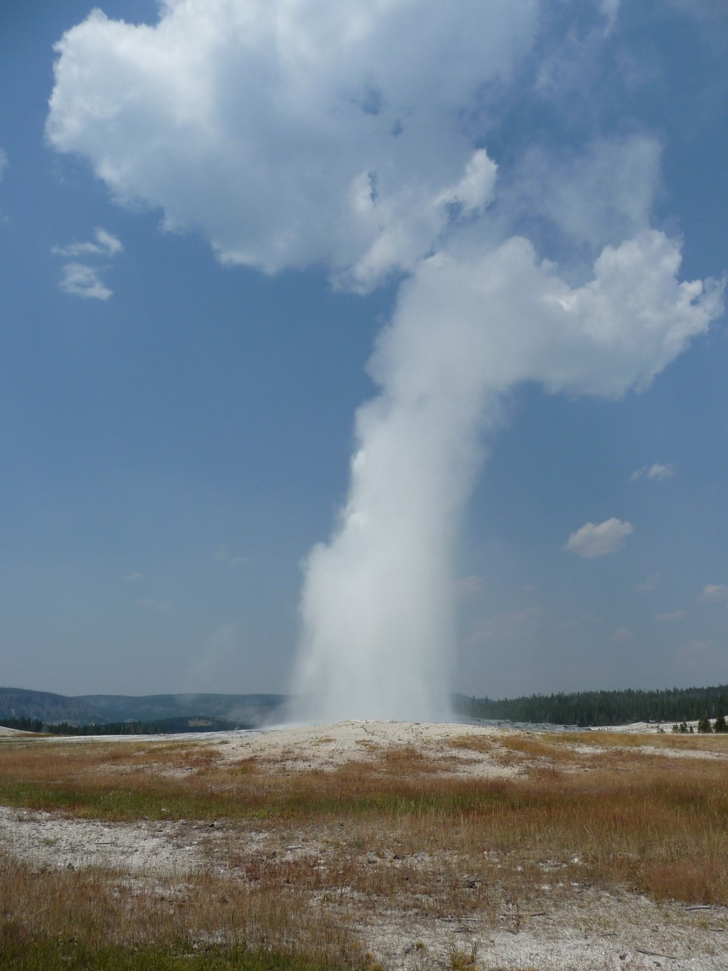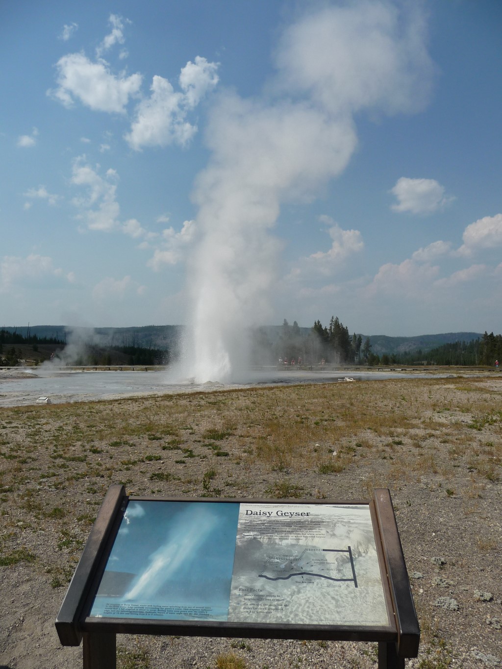 Zuerst sahen wir uns die Hauptattraktion an, den Ausbruch des Old Faithful Geyser, der sich ca. alle 75 Minuten abspielt. Um einen guten Platz zu bekommen waren wir schon etwa eine Stunde vorher dort. Der Ausbruch war wieder einmal spektakulär!