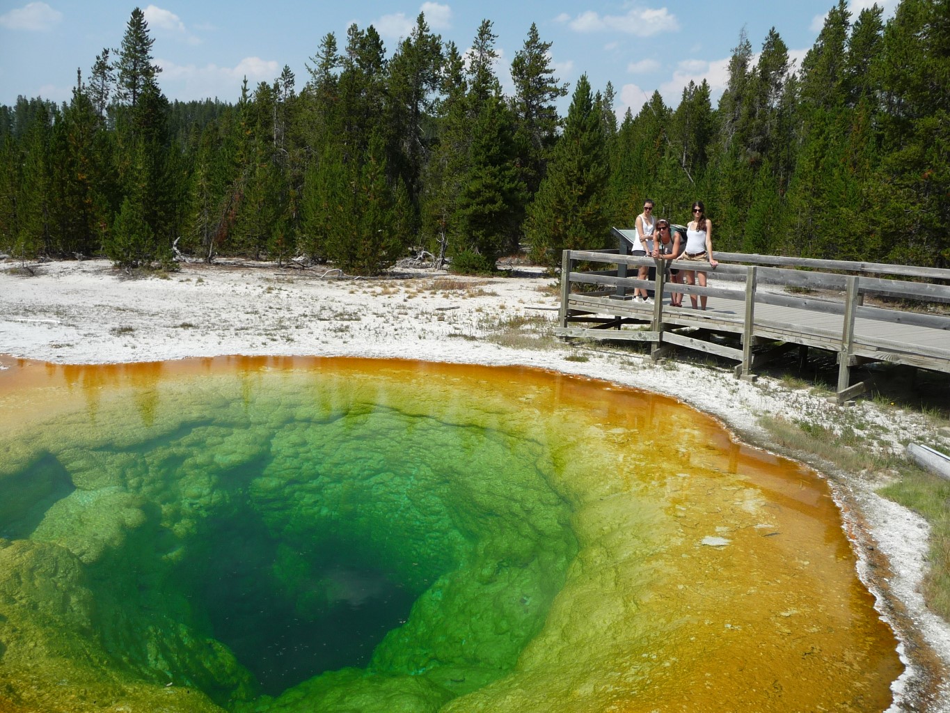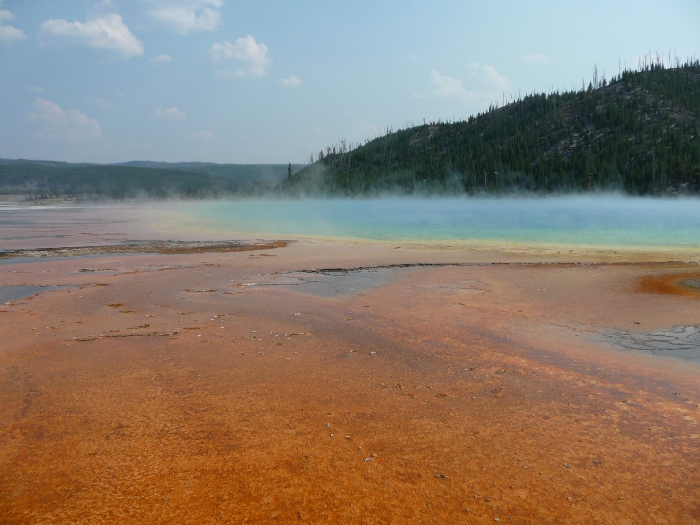 Danach wanderten wir zum Geyser Hill View Point, und genossen die sagenhafte Aussicht auf die zahlreichen rauchenden Geysire und die klaren Pools. Nach einem 1 1/2 stündigen Spaziergang über einen Holzsteg und vielen Farbfotos später, erreichten wir ein weiteres Highlight, den Morning Glory Pool.
