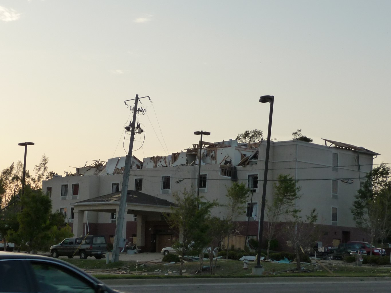 Wir bezogen unser Zimmer im Hotel Hamton In und machten danach einen kurzen Einkaufsbummel bei Ross Stores. Das Abendessen hatten wir im Outback Steakhouse eingeplant. Als wir dort ankamen, erschraken wir ein wenig, denn eine Woche zuvor wütete hier ein Tornado. Überall gab es zerstörte Häuser und niedergerissene Strommasten. Die Trümmerteile lagen immer noch weit verstreut herum.