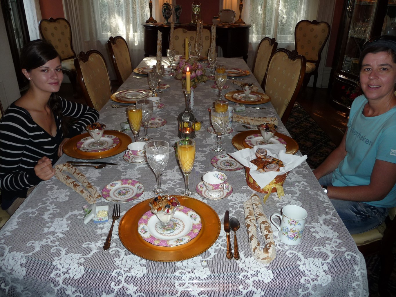 Bei unserer freundlichen Gastfamilie genossen wir ein feines amerikanisches Frühstück mit Champagner und zum Muttertag bekam jede anwesende Mutter eine Rose geschenkt.