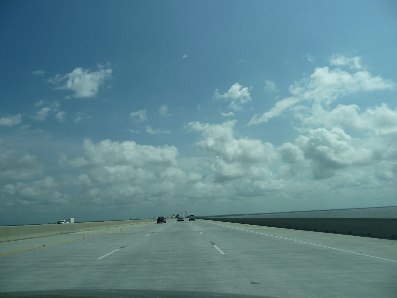 Heute steuerten wir die letzte Destination unserer Reise an: Pensacola Beach am Golf von Mexiko. Die Fahrt dorthin war abwechslungsreich, die Roue führte zuerst über kilometerlange Brücken durchs Bayou und danach zeitweise der Küste entlang.