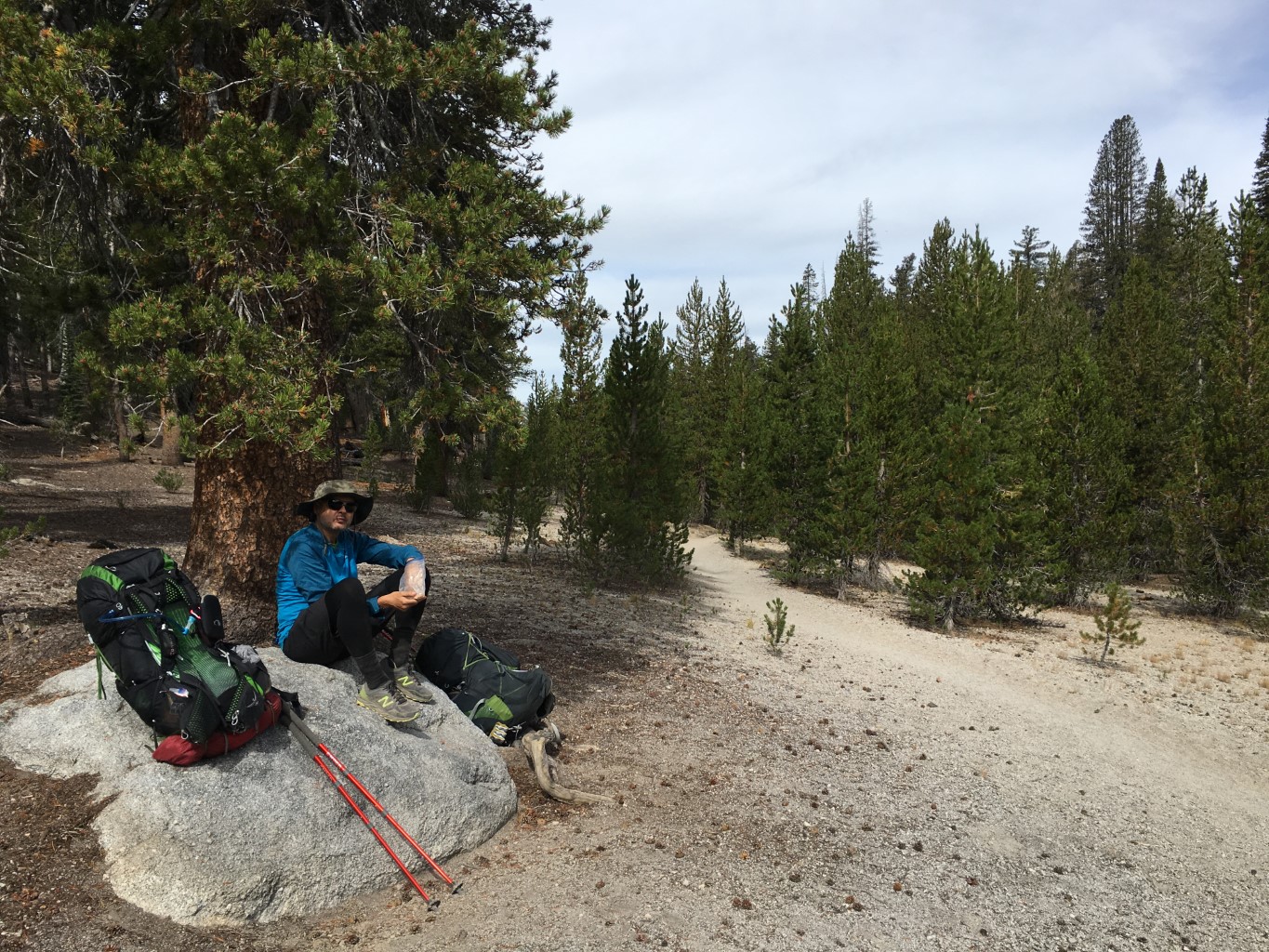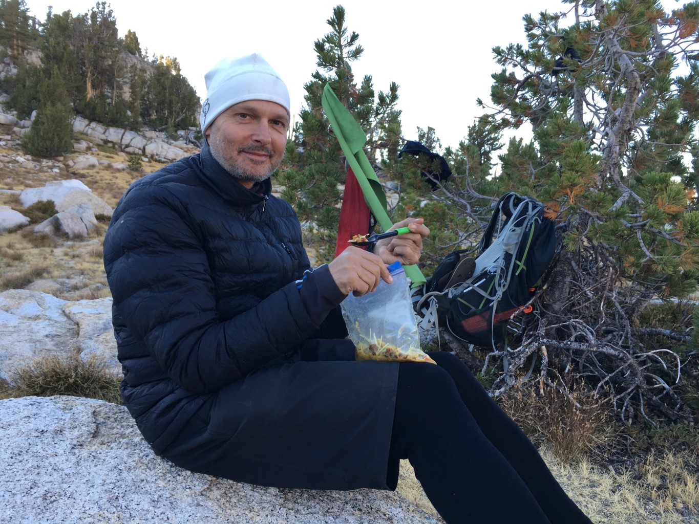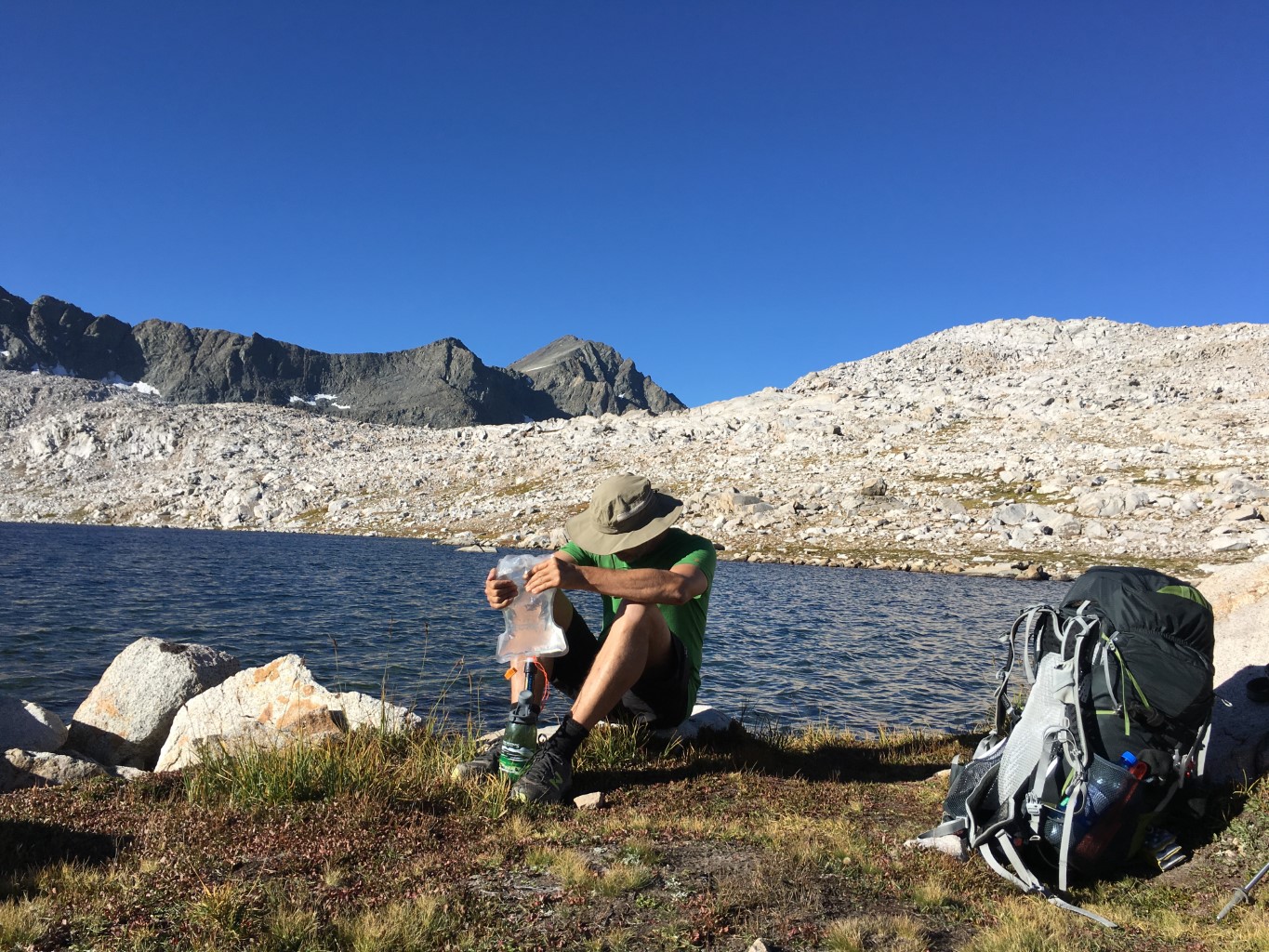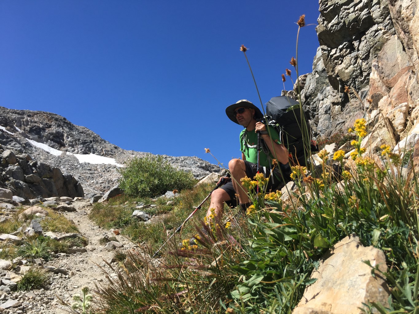 Nach einem kurzen Kaffee haben wir alles zusammengepackt uns sind über den Selden Pass marschiert. Hinter dem Pass haben wir etwas oberhalb der Sallie Keyes Lakes eine Frühstückspause gemacht und die feuchten Schlafsäcke an der Sonne getrocknet.