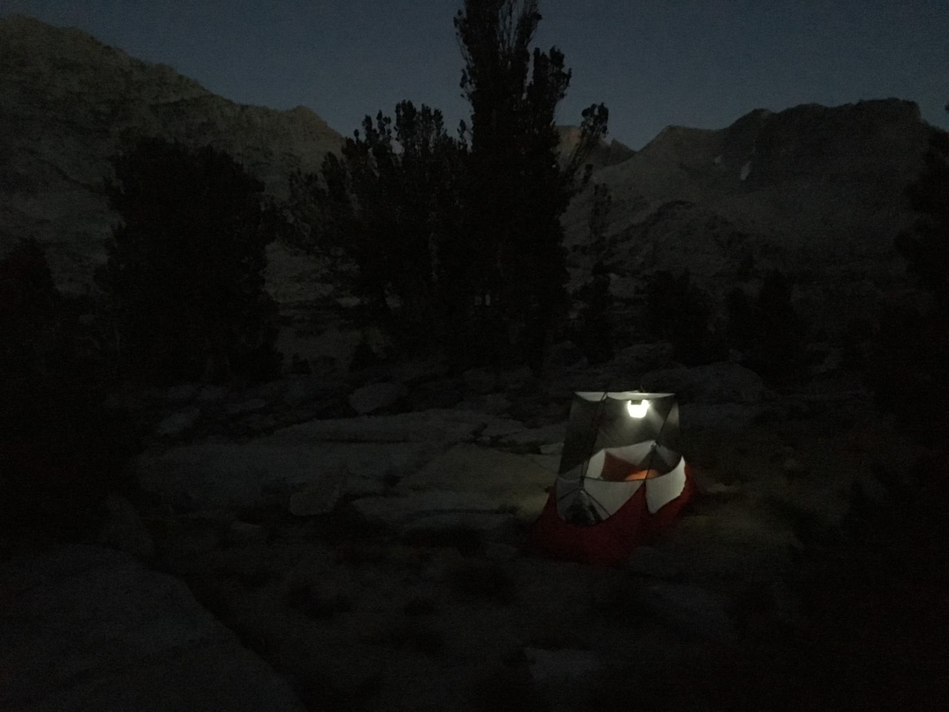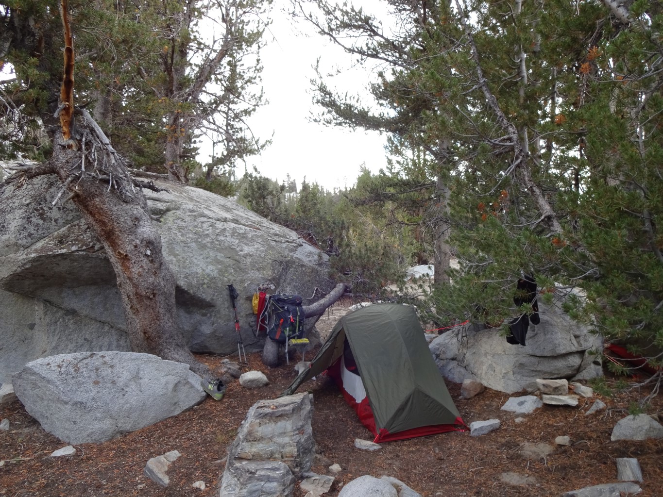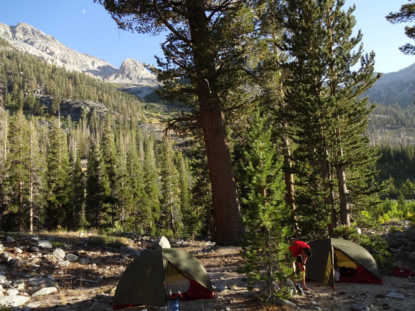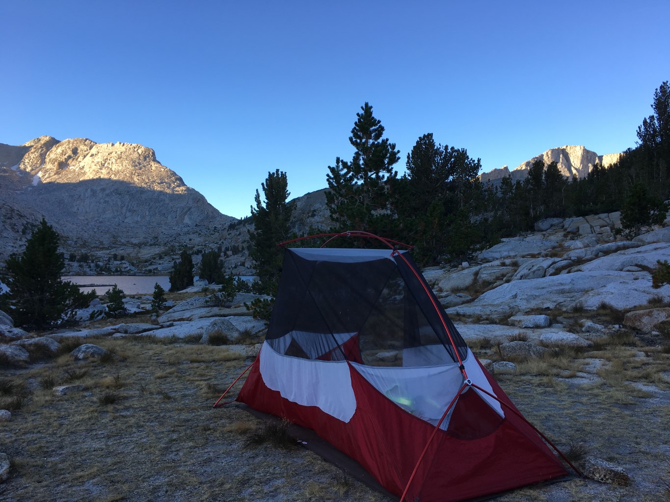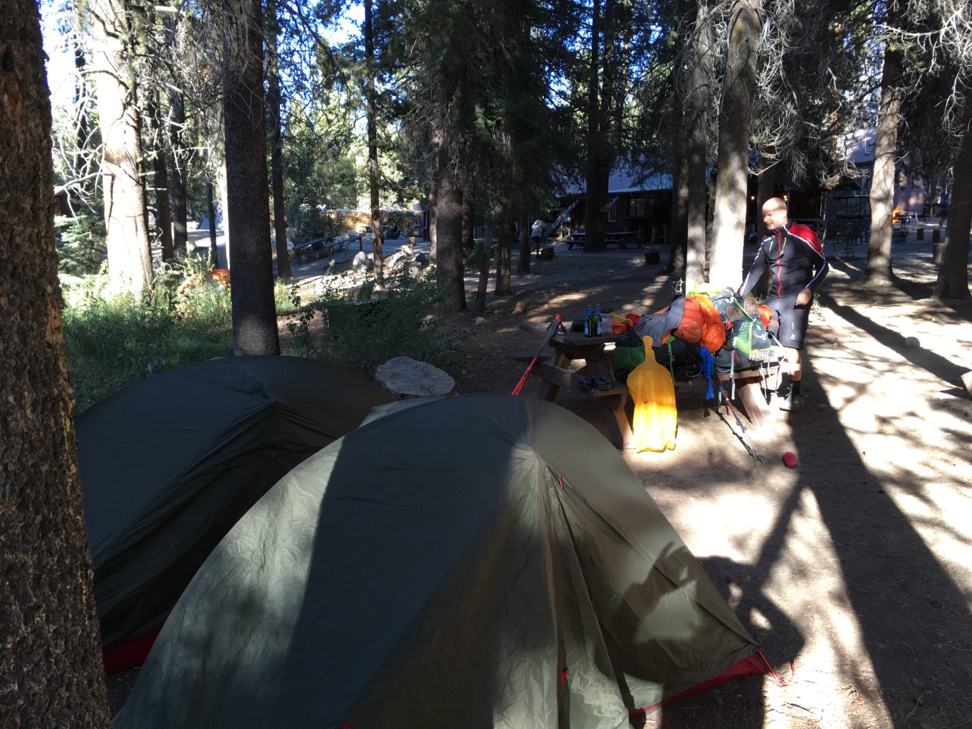 Weil dieses Wochenende Labor Day war, hatten wir auf dem Reds Meadow Campground ziemlich viel Betrieb. Ich bin erst gegen 23 Uhr eingeschlafen. Am Morgen war das erste Mal das Zelt und der Schlafsack etwas feucht.