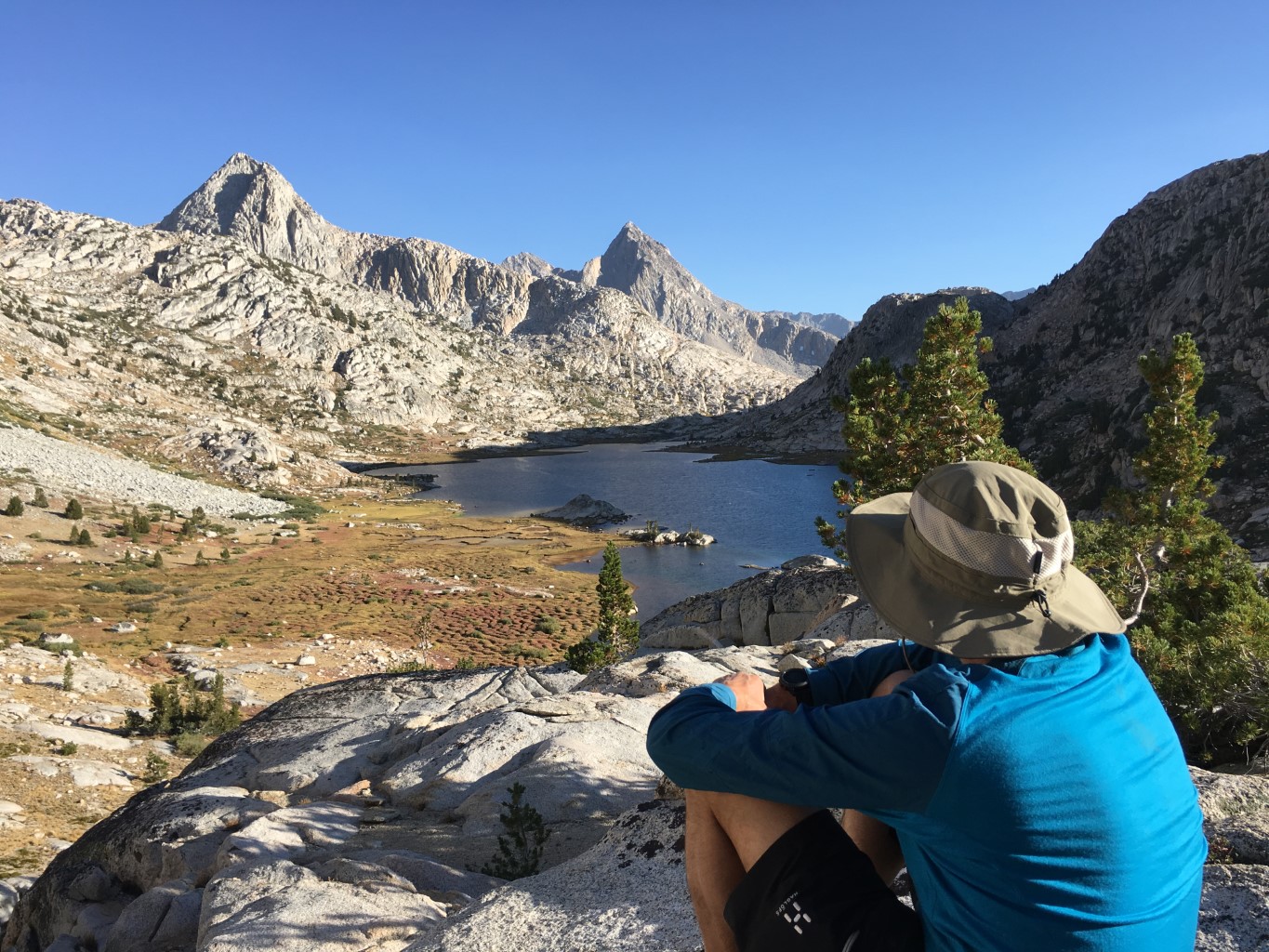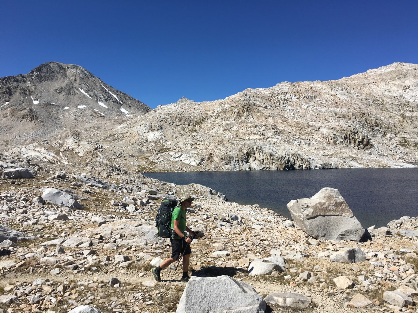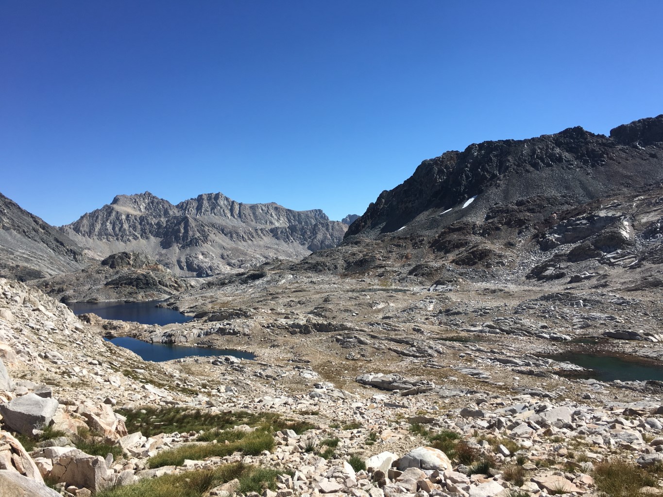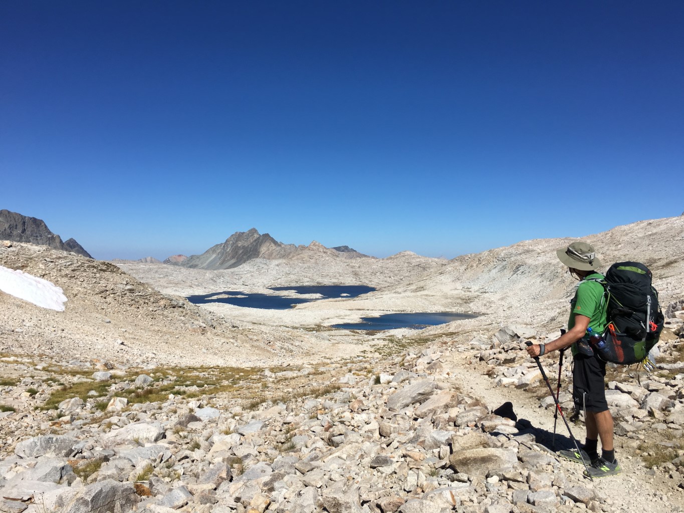 Beim Wanda Lake haben wir eine Frühstückspause gemacht und waren schon kurz nach 10 Uhr auf dem Muir Pass. Die karge Landschaft und dazwischen die tiefblauen Seen haben mich sehr beeindruckt.