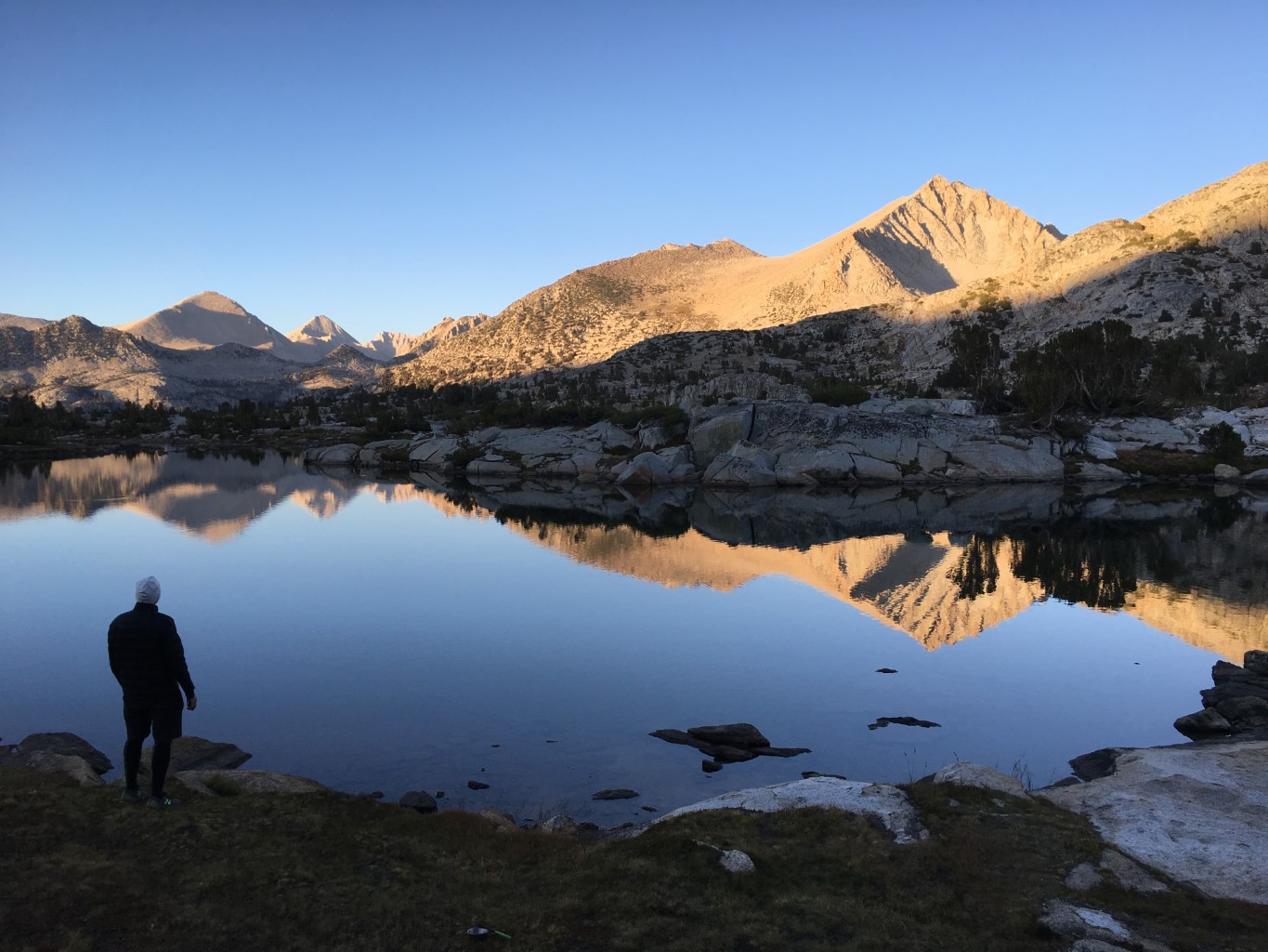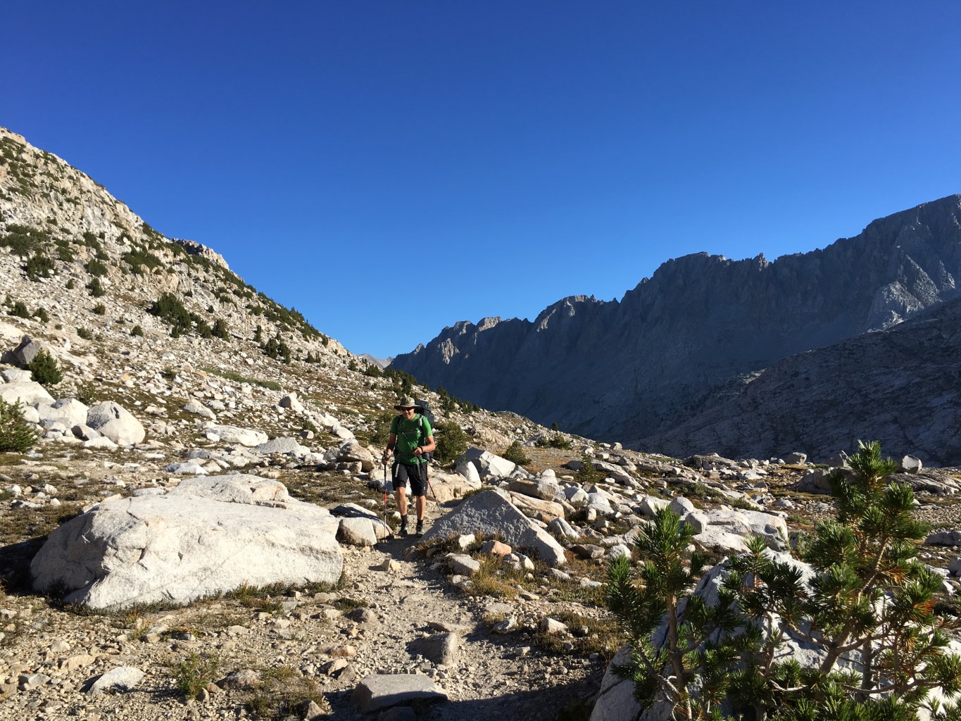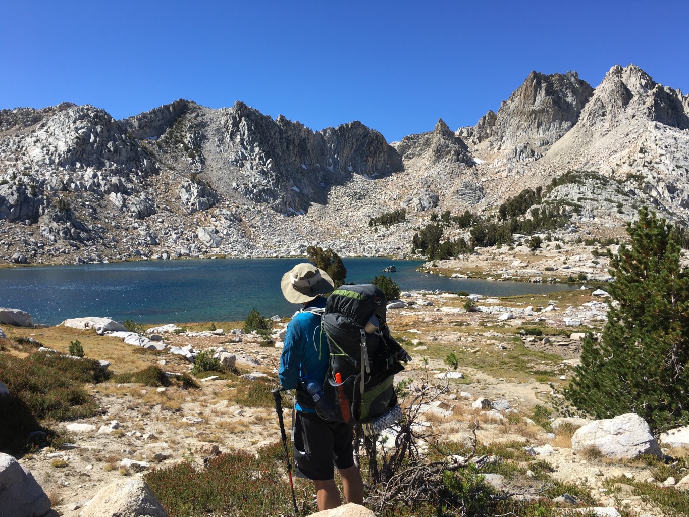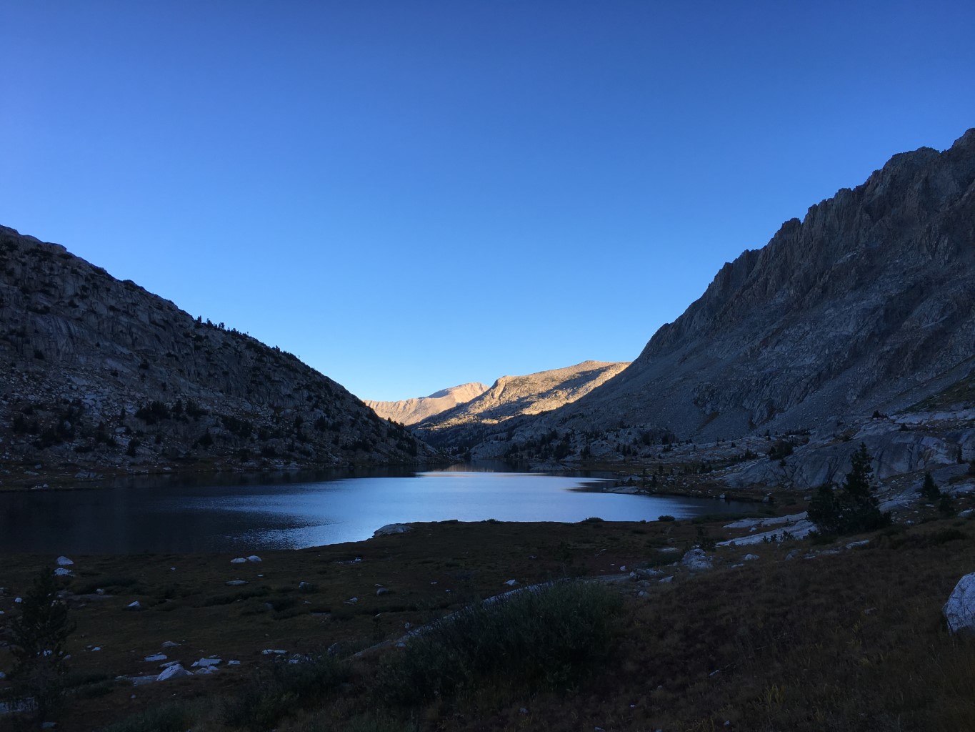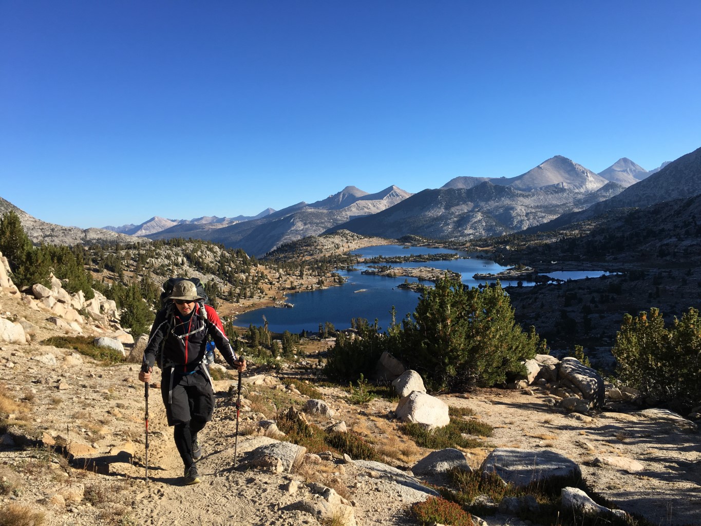 Beim Wanda Lake haben wir eine Frühstückspause gemacht und waren schon kurz nach 10 Uhr auf dem Muir Pass. Die karge Landschaft und dazwischen die tiefblauen Seen haben mich sehr beeindruckt.