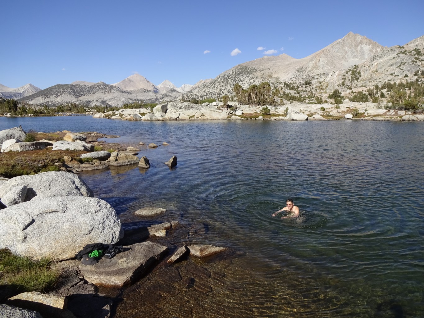 Um halb 10 verließen wir das VVR und gelangten via Bear Ridge Trail zurück zum JMT. Um 16 Uhr erreichten wir das heutige Tagesziel, den Marie Lake gleich vor dem Selden Pass. Schnell hatten wir ein schönes Plätzchen gefunden und die Zelte aufgestellt. Danach namen wir ein Bad im kalten See, wuschen die Wäsche und pflegten die Füsse.