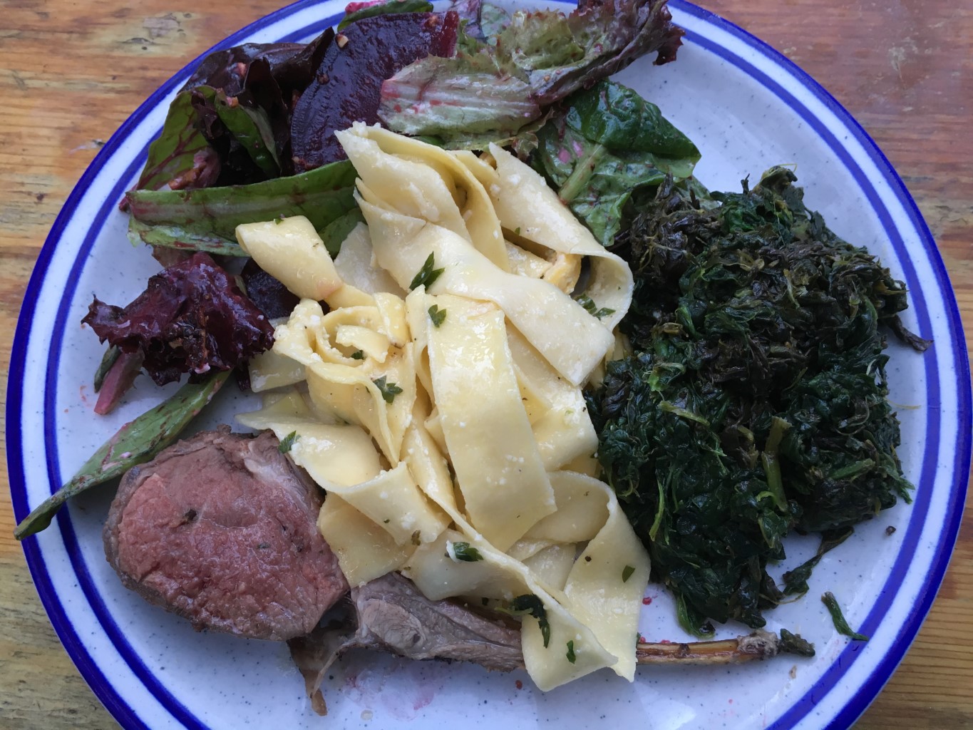 Um 18:30 läutete die Glocke fürs Abendessen. Es gab Suppe, Salat, Lammracks, Teigwaren, Spinat und ein Dessert. Es war alles sooo fein 🙂 und das beste war, wir konnten heute auf einer richtigen, weichen Matratze schlafen 🙂
