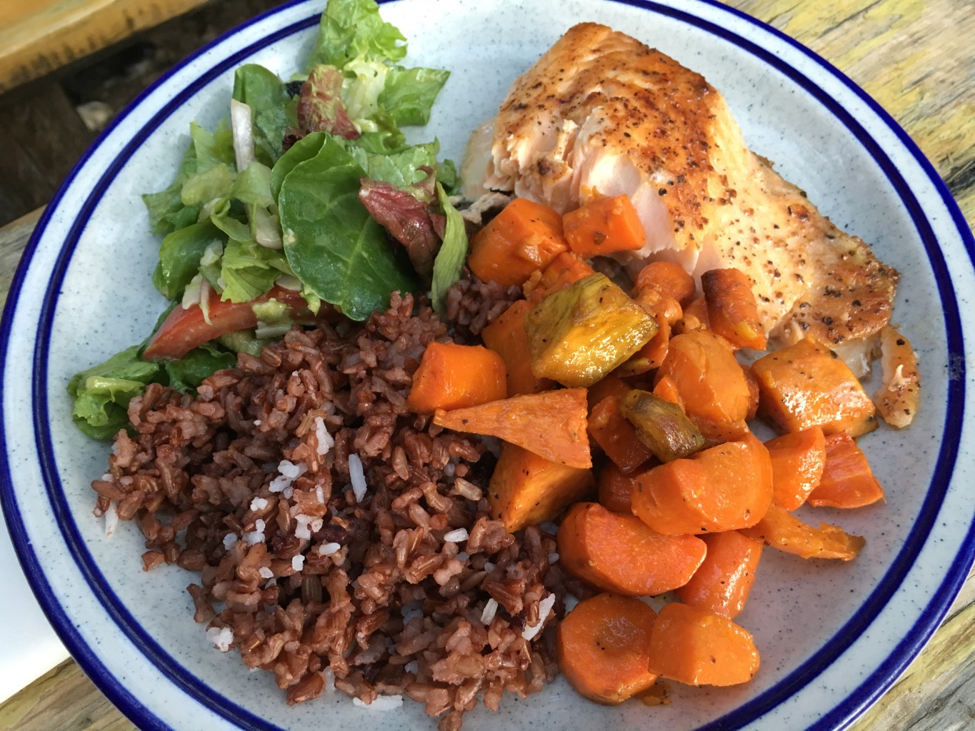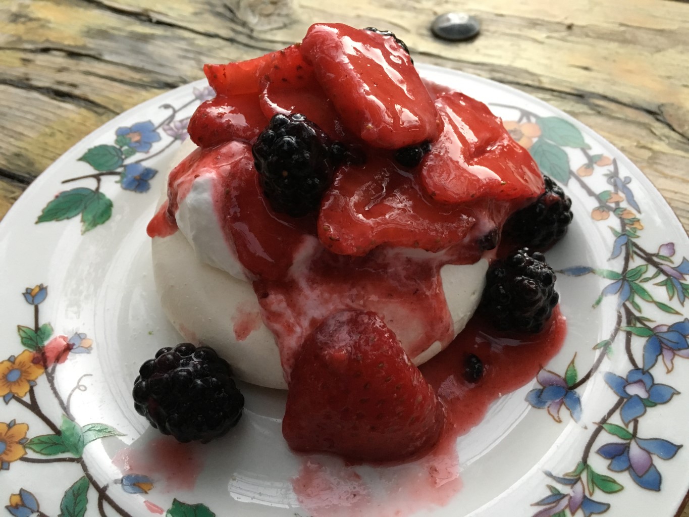Zum Nachtessen gab es eine wunderbare Mais Suppe, danach Lachs mit Süßkartoffeln, Reis, Rüebli und einen wunderbaren Salat mit Cranberries, Avocados, Zwiebeln, Lattich … einfach sensationell 🙂 Zum Dessert gab es noch Meringues mit Rahm, Erd- und Himbeeren 🙂