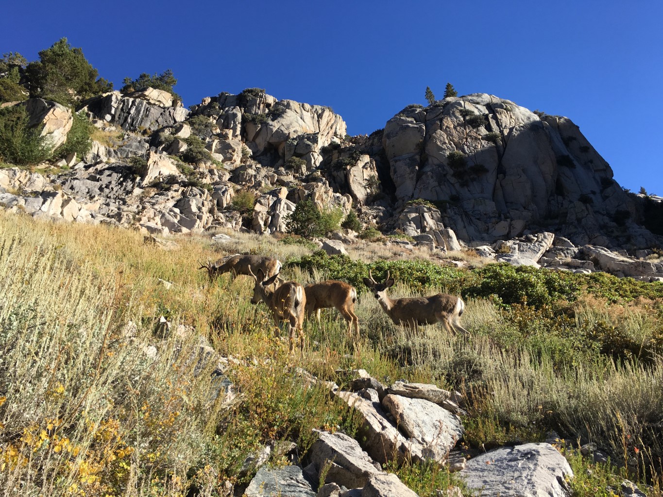 Wir sind wie immer um 6 Uhr aufgestanden, haben alles zusammengepackt, einen Kaffee getrunken und um 7 Uhr bereits losmarschiert. Beim Aufstieg zu den Palisade Lakes konnten wir einige Hirsche beobachten. Gegen 10 Uhr haben wir am Lower Palisade Lake eine Frühstücks Pause gemacht und kurz nach 12 Uhr den Mather Pass auf 3688 m erreicht. Auf dem Pass war es absolut windstill und richtig heiss.