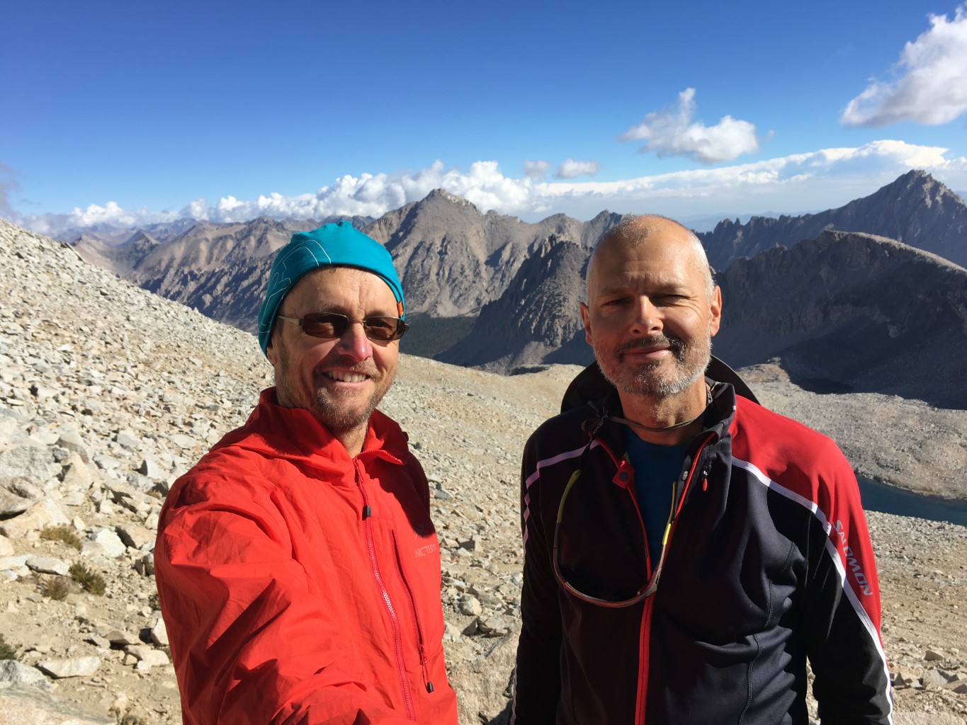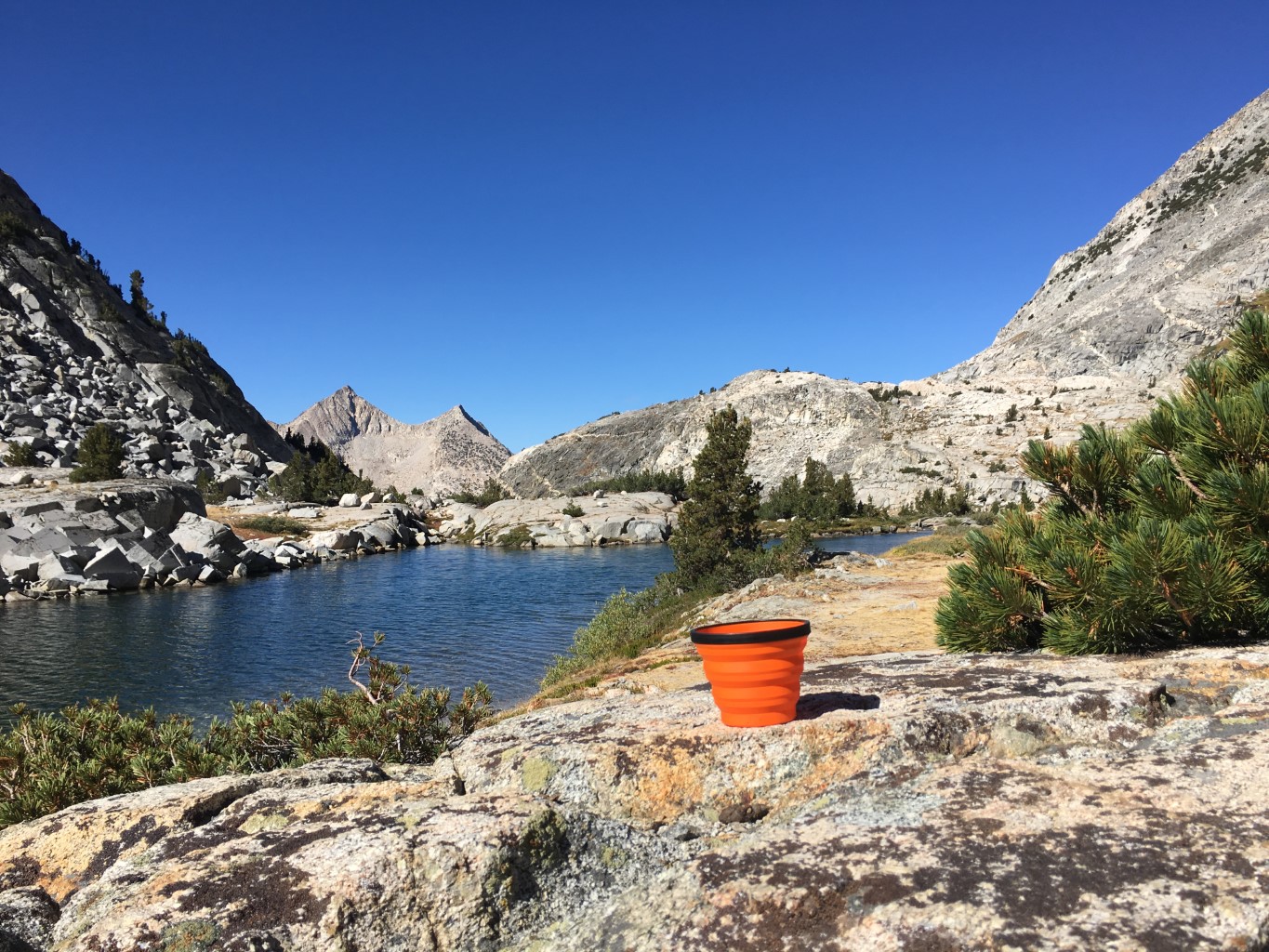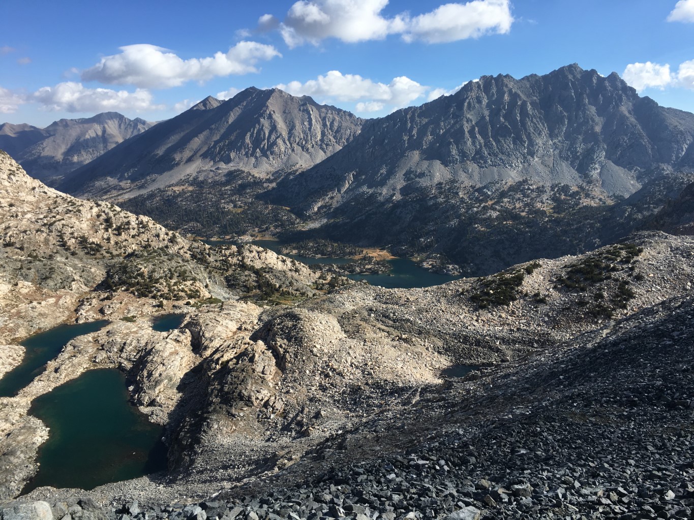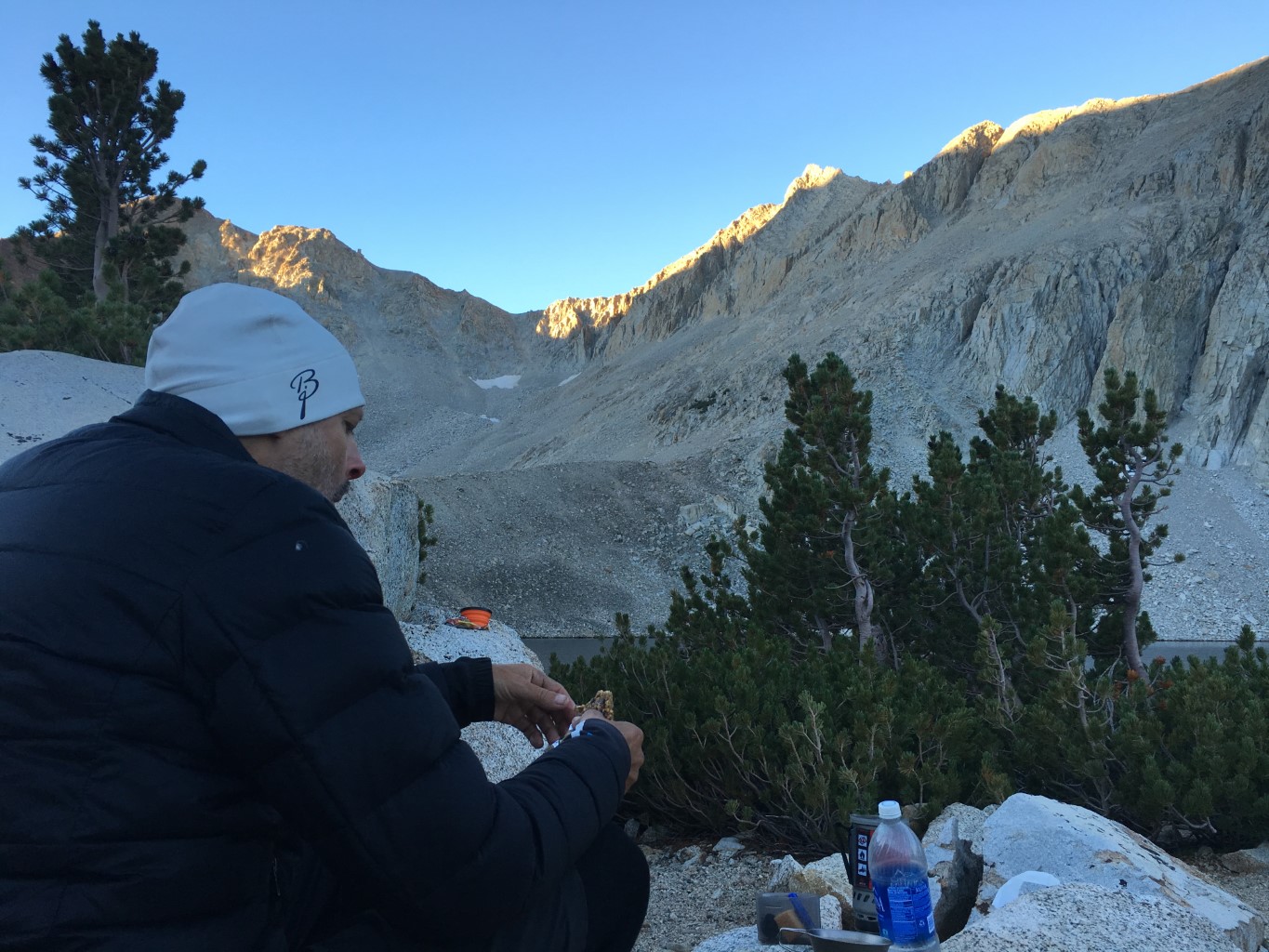 Morgens um 6 Uhr lief es wieder ab wie jeden Tag: Die Sachen zusammenpacken und Kaffee kochen. Um 7 haben wir den Aufstieg zum 3697 m hohen Pinchot Pass in Angriff genommen. Gegen 8 Uhr haben wir den höchsten Punkt für den heutigen Tag erreicht 🙂 Kurz ein paar Fotos gemacht und schon begaben wir uns auf den Abstieg. Oberhalb der Twin Lakes haben wir eine Frühstückspause eingelegt.